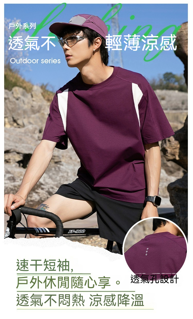【山系戶外風】久穿如新~夏季涼感速乾拼色防曬T恤