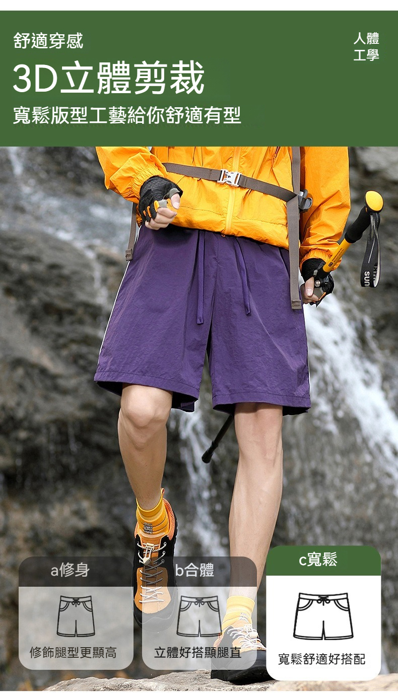 【戶外冰絲系列】吸濕速幹~新款輕薄涼感透氣防曬寬鬆休閒短褲