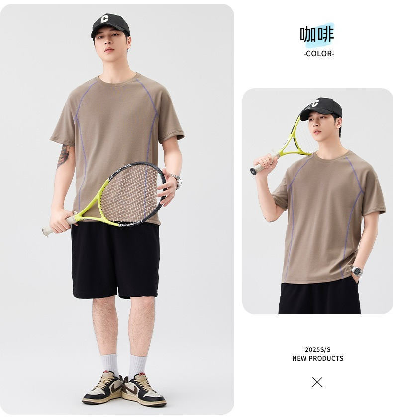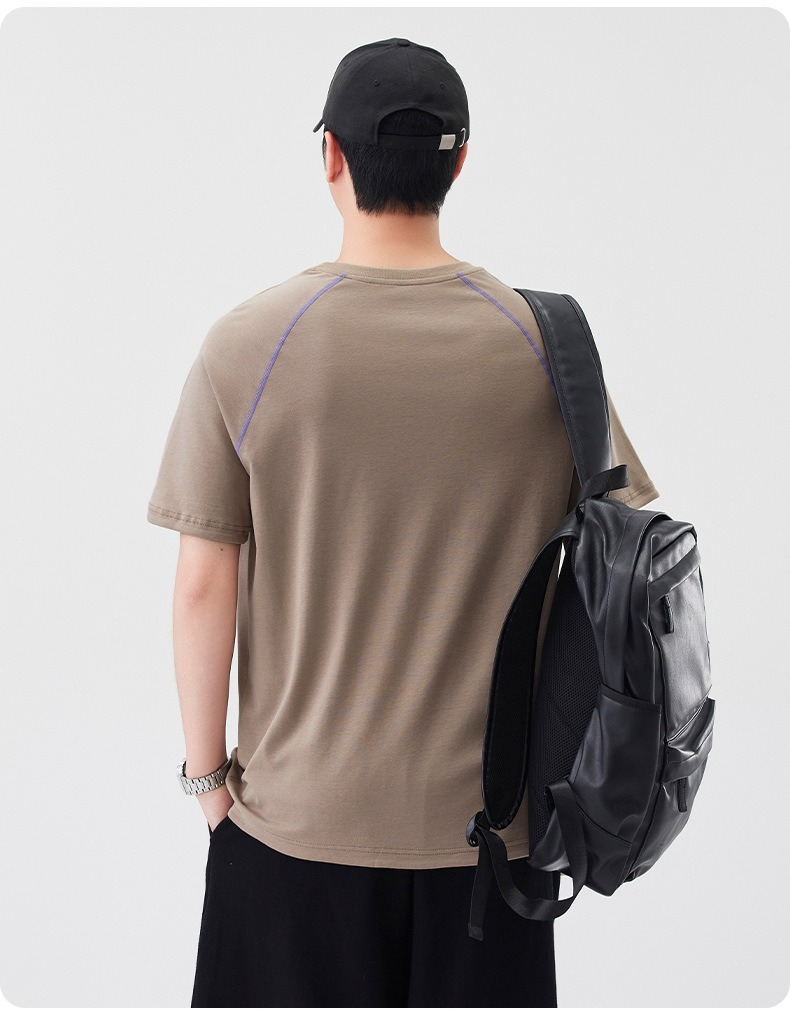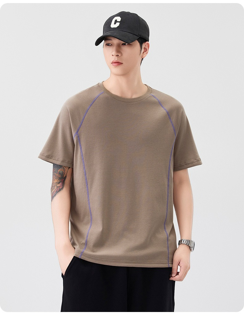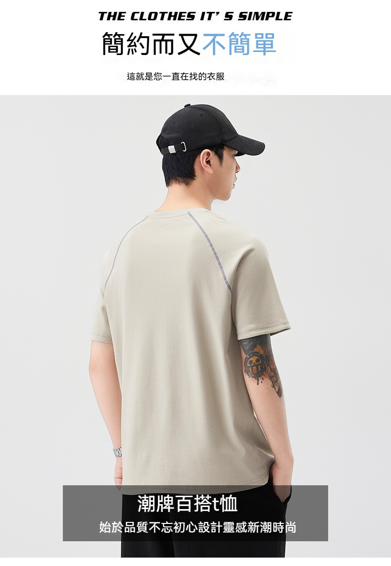 【街頭極簡風】100%純棉,新款純棉撞色柔軟親膚挺括垂感T恤