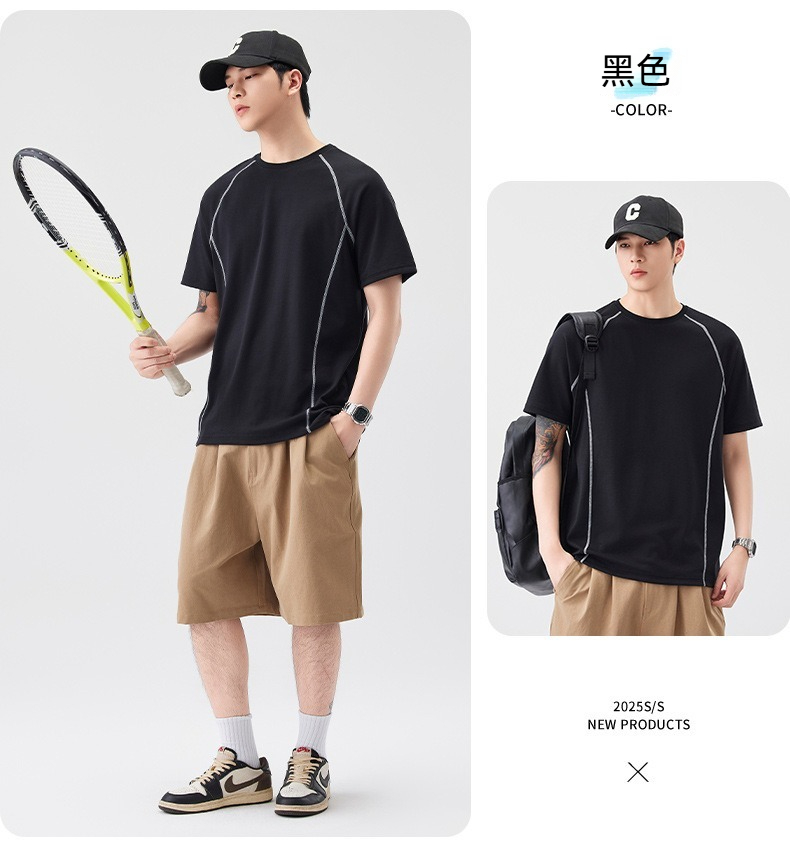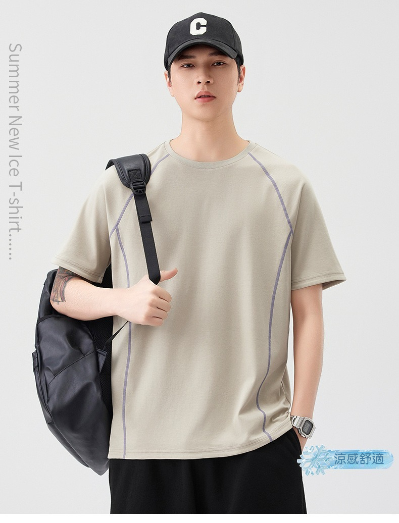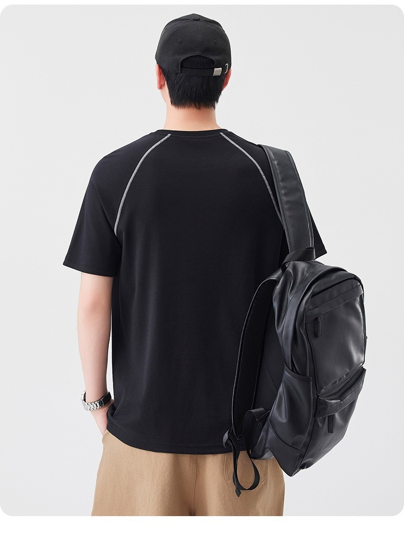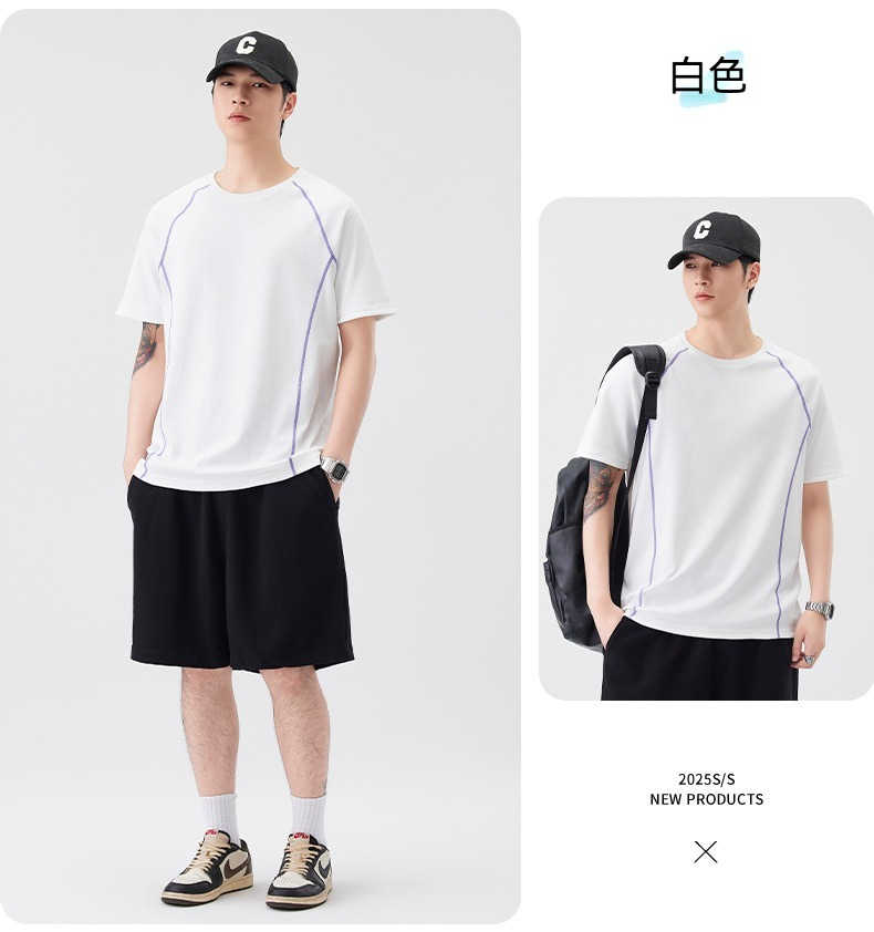 【街頭極簡風】100%純棉,新款純棉撞色柔軟親膚挺括垂感T恤