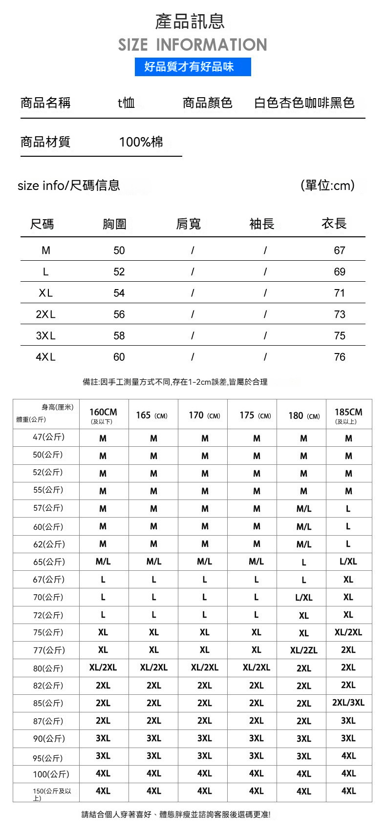 尺碼說明