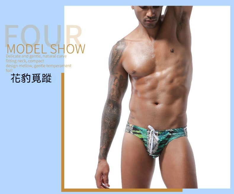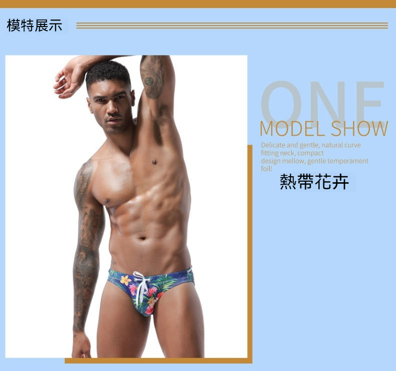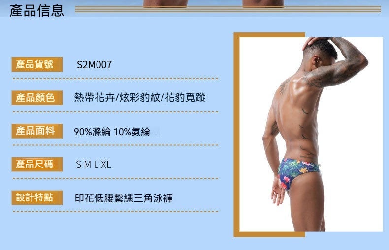 【低腰繫繩】熱帶印花風彩紋三角泳褲