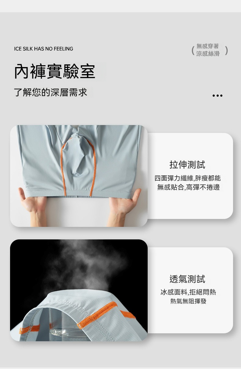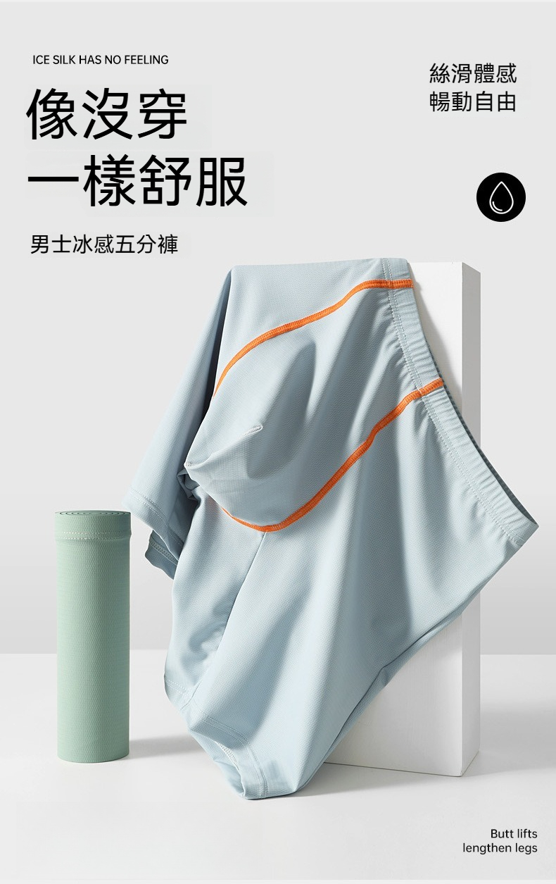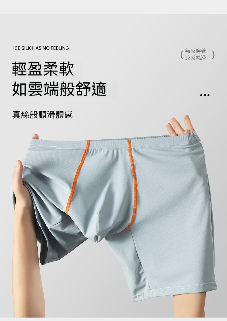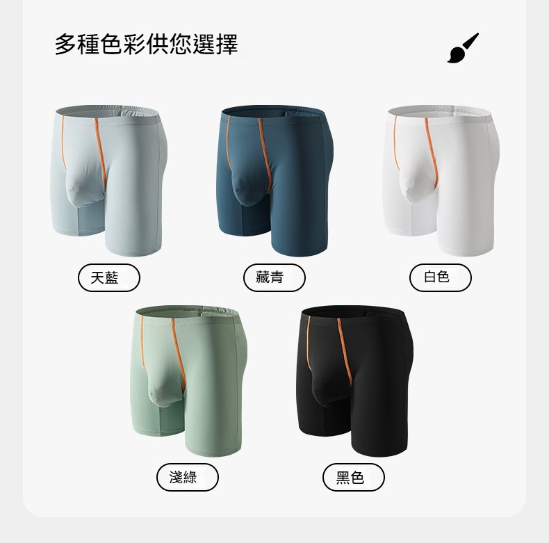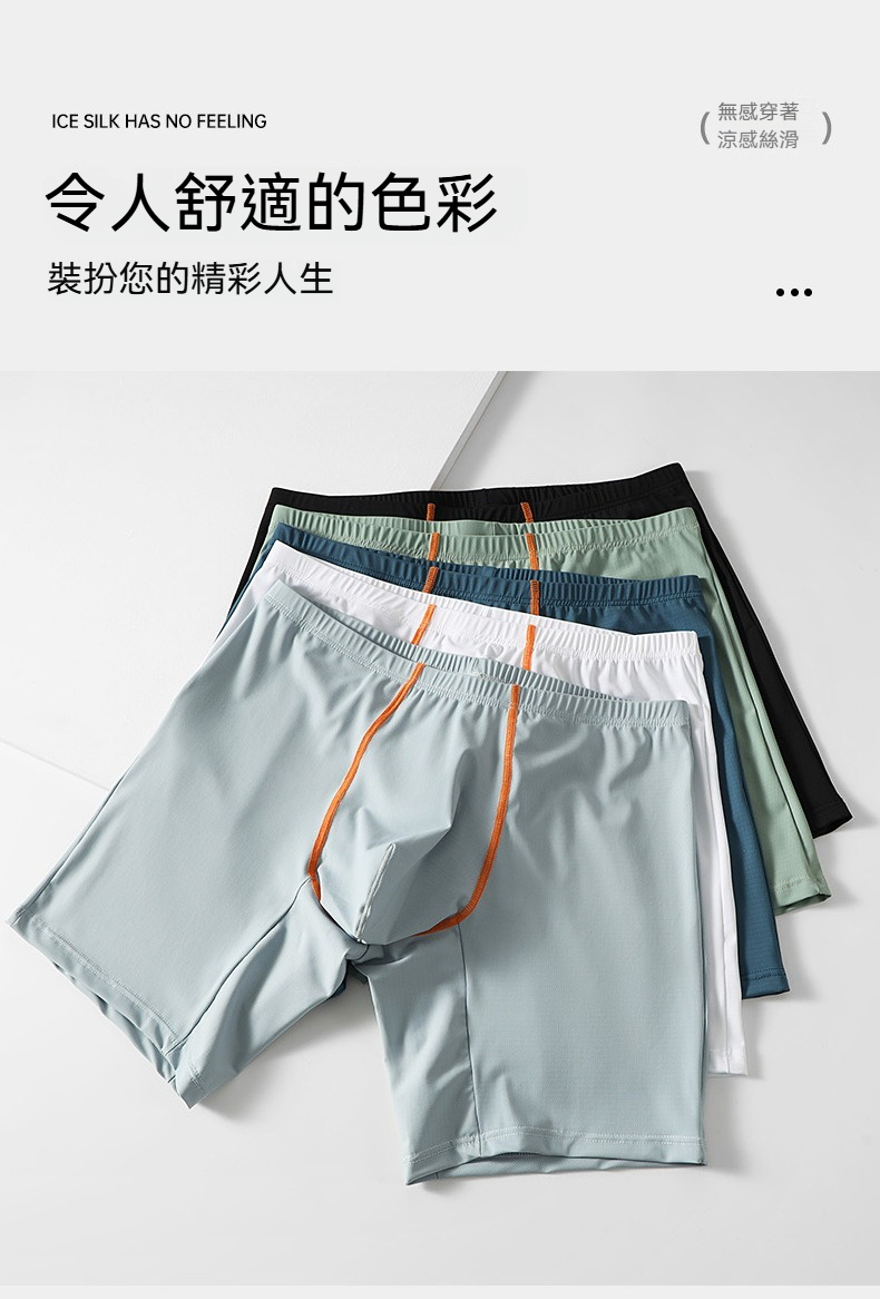 【冰感加長版】加長褲腿冰絲速乾順滑大囊袋男士五分平角内褲