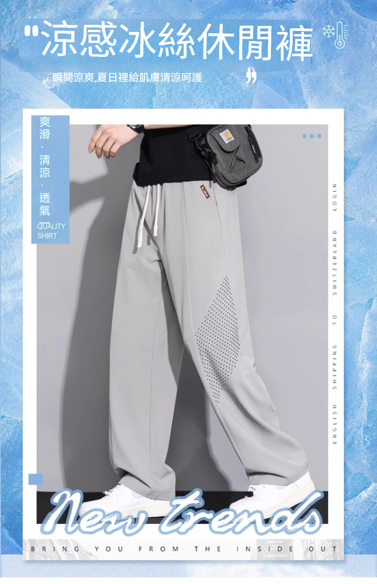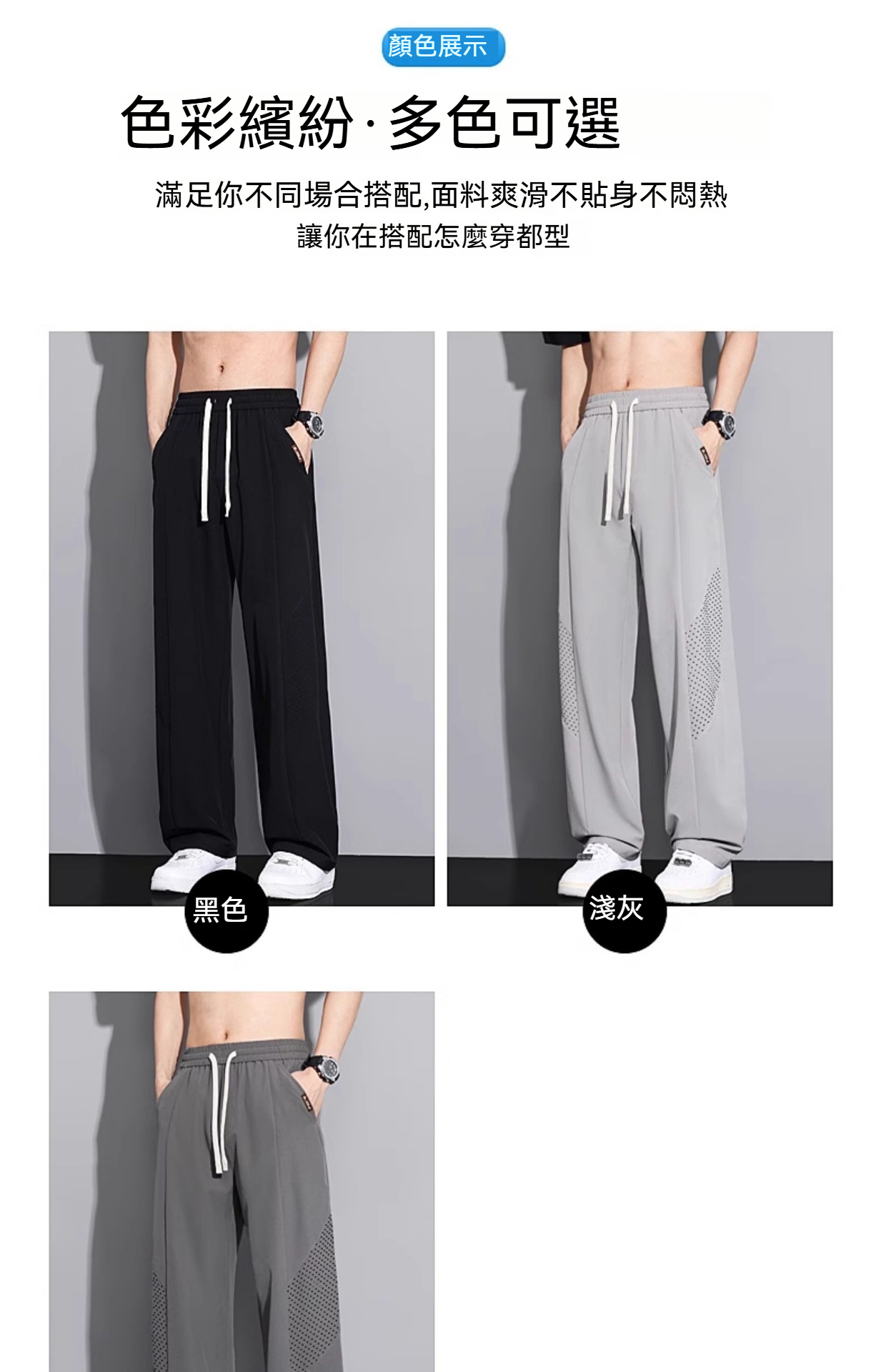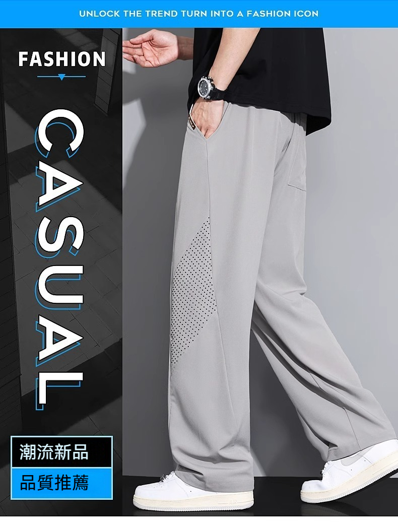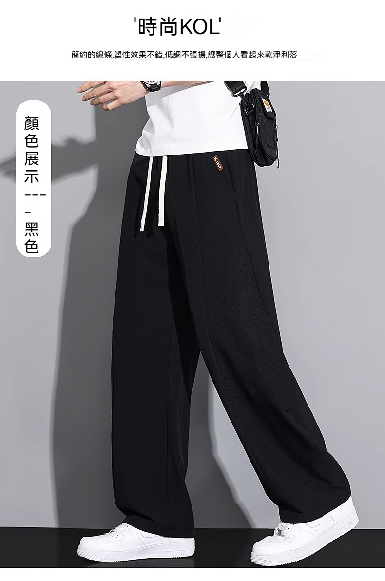 【冰絲垂感】-5℃涼感降溫~夏季冰絲網眼透氣直筒速乾運動長褲
