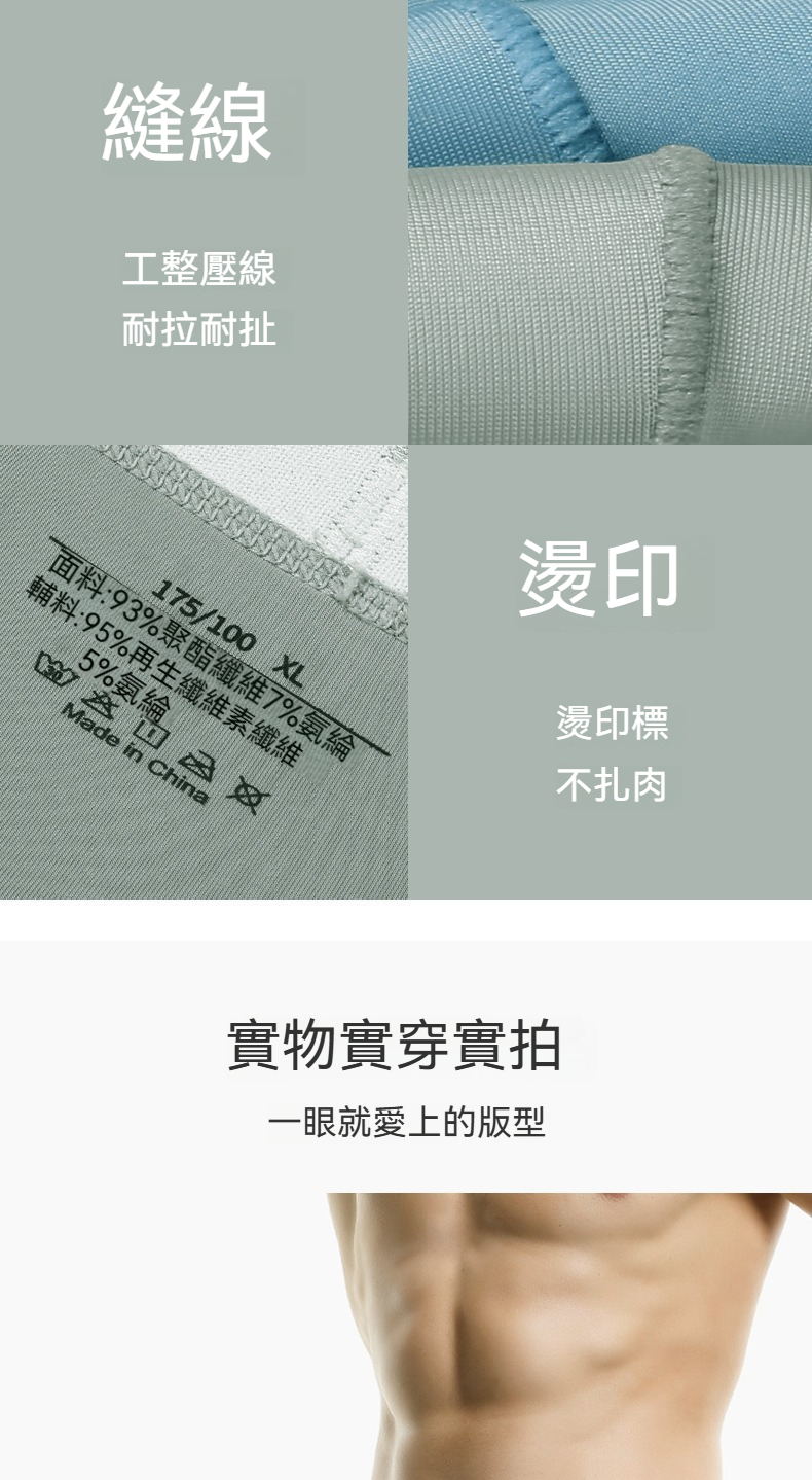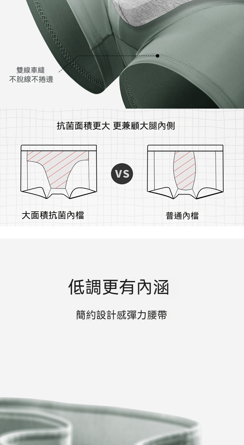 【冰絲涼感系列】舒仕新款純棉襠抗菌透氣男士平口內褲