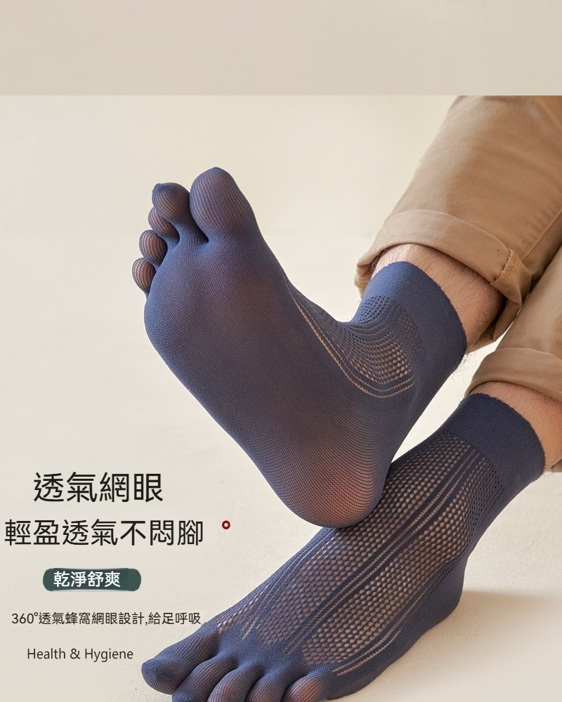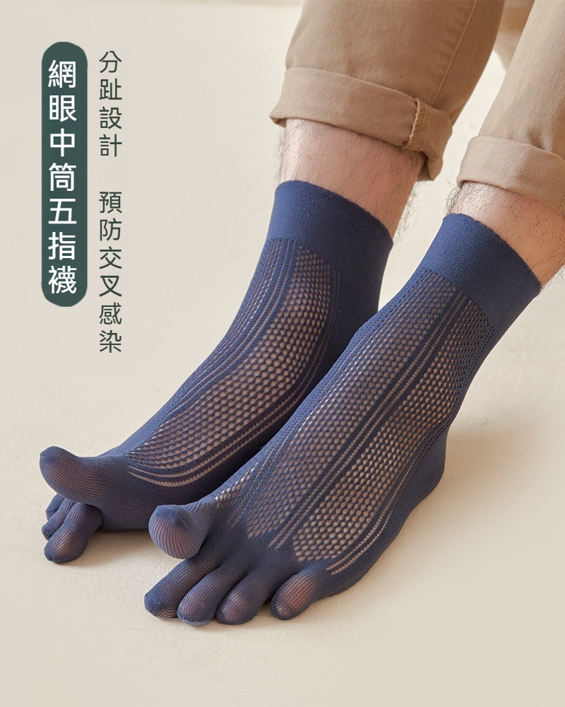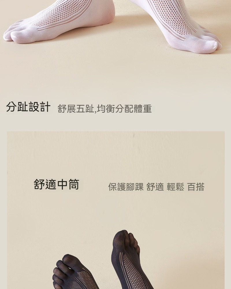 【分趾設計】夏季網眼中筒透氣吸汗五趾絲襪