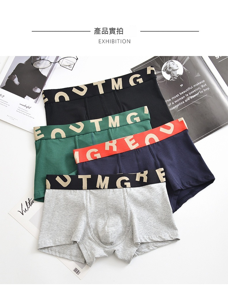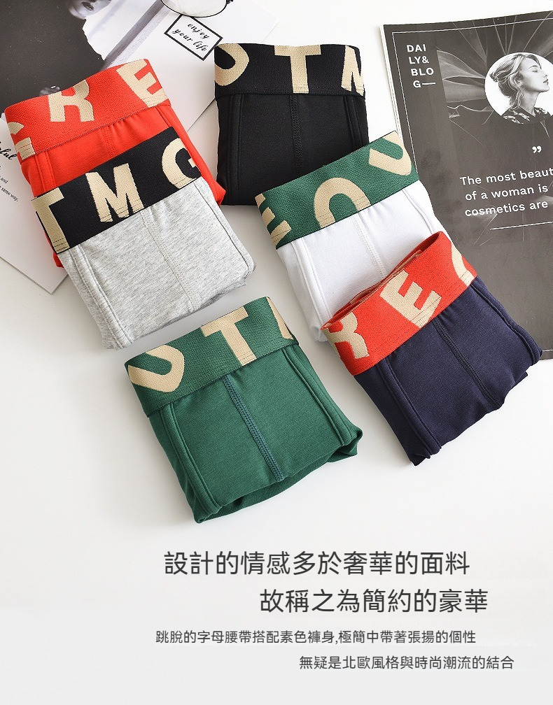 【升級内檔吸濕排汗】時尚北歐風字母腰帶純色透氣抗菌U凸囊袋運動男士四角内褲