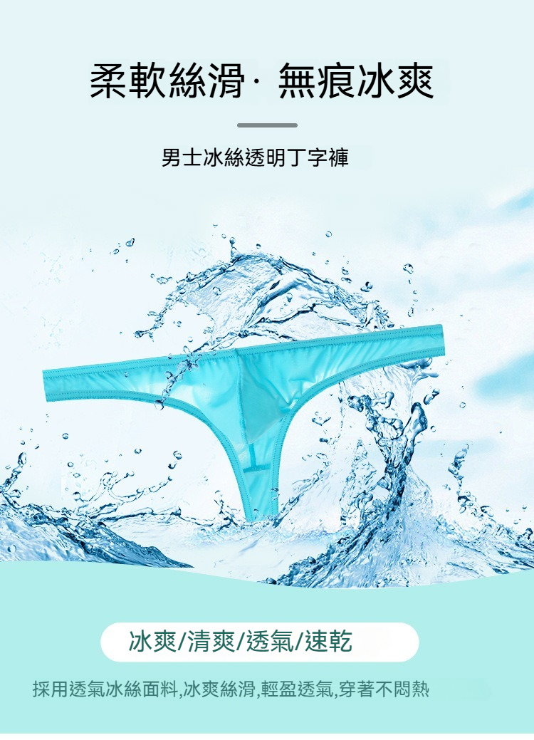 【半透明冰絲薄感】低腰冰絲小三角囊袋性感男士T褲內褲
