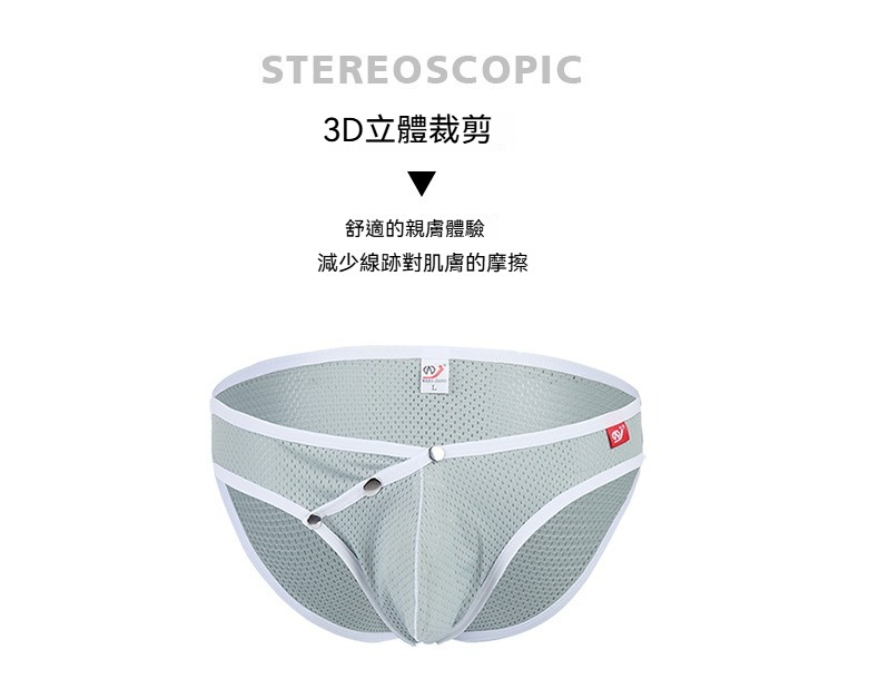 【可拆卸紐扣】冰絲網孔網孔透氣速乾低腰緊身三角男士內褲