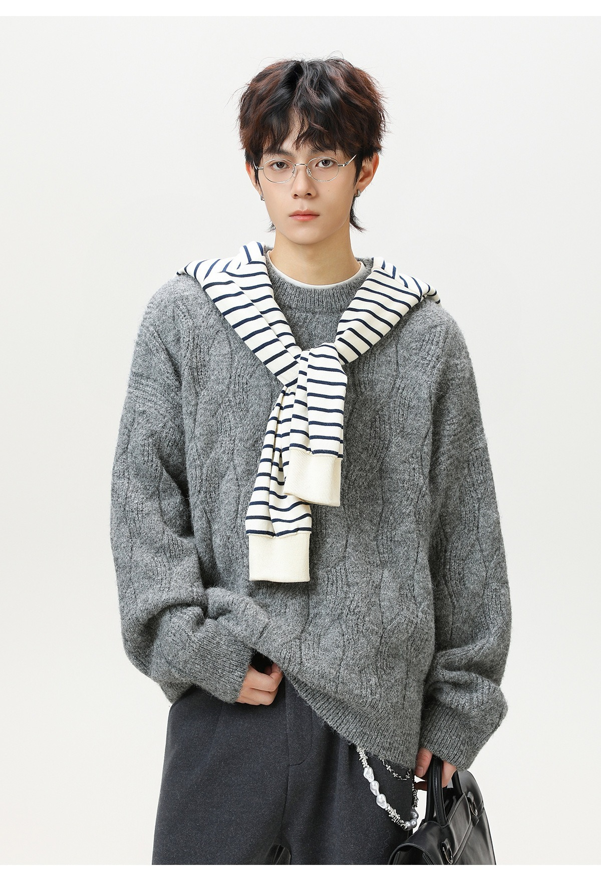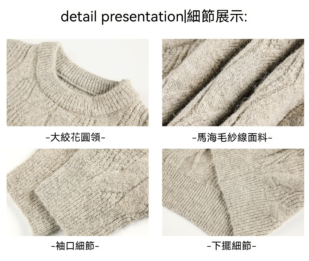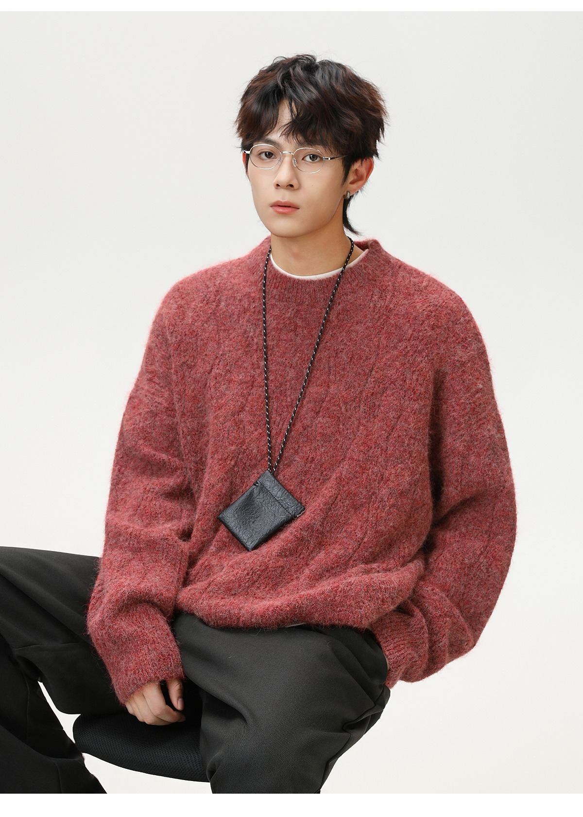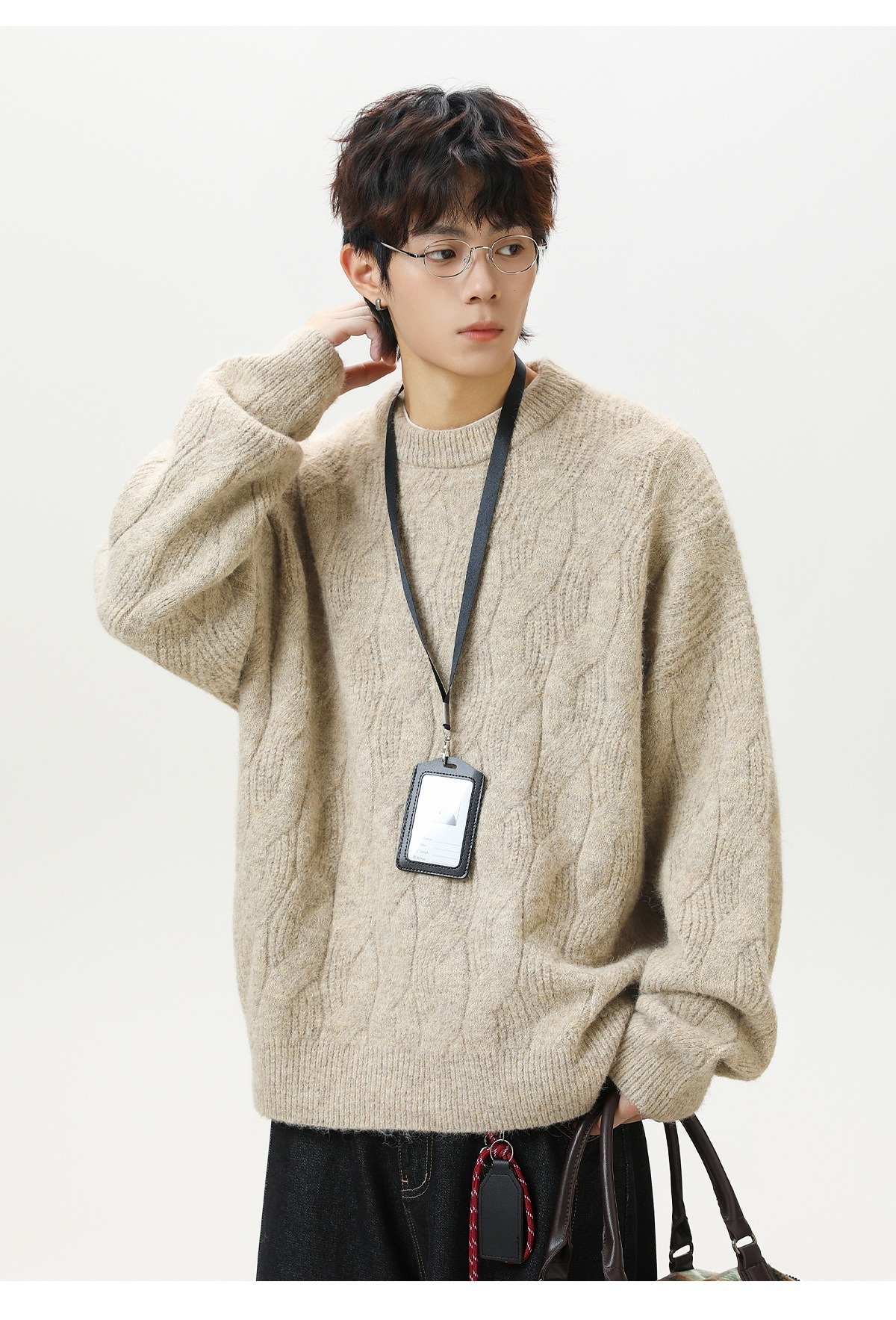 【復古大紋花肌理】秋冬加厚質感純色圓領毛衣寬鬆肌理男士針織衫