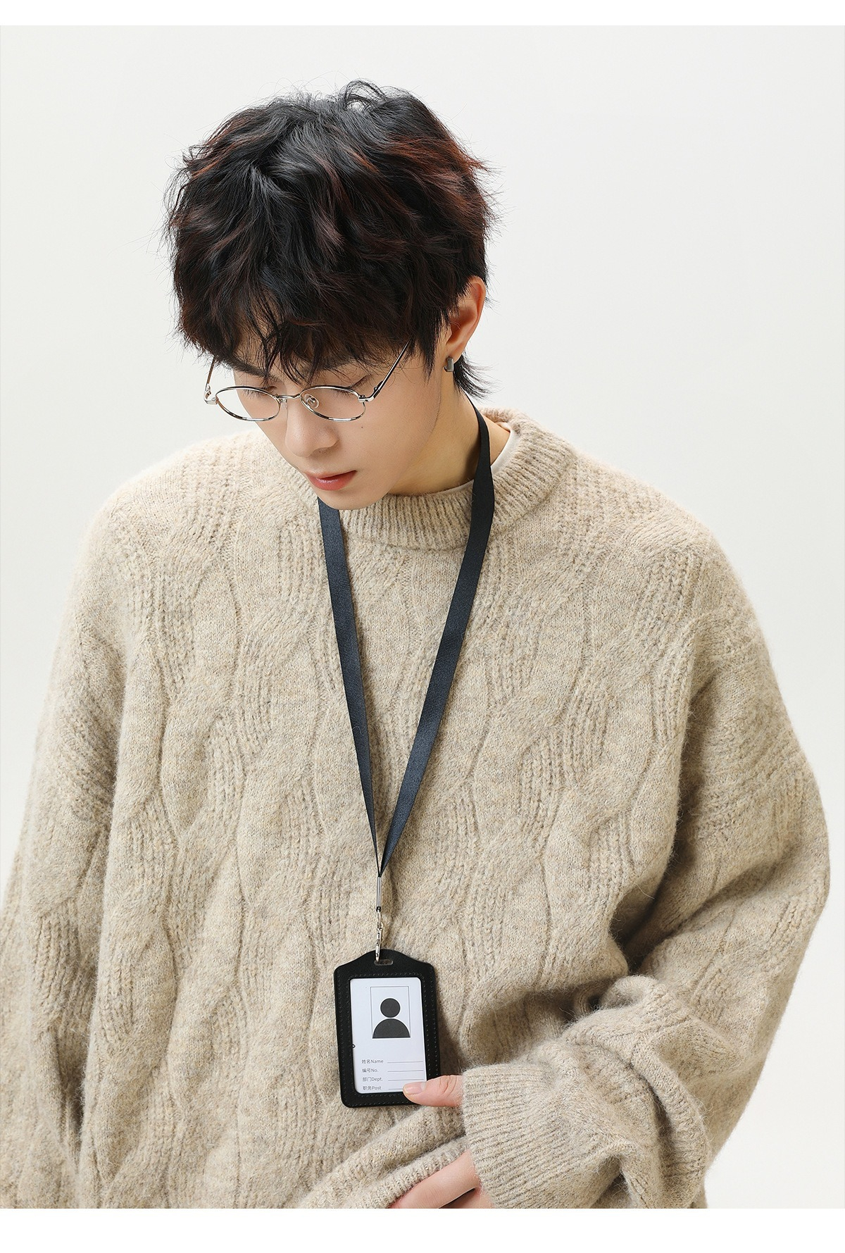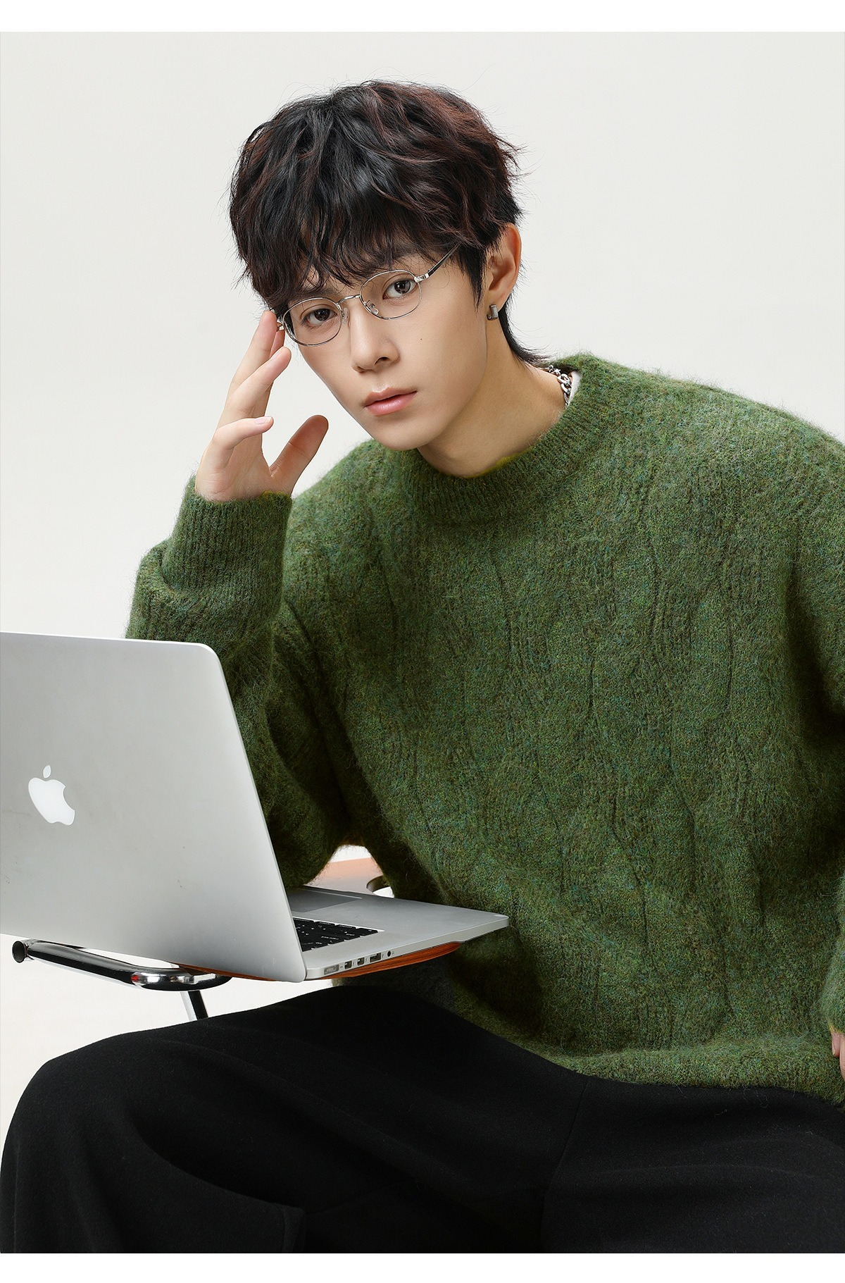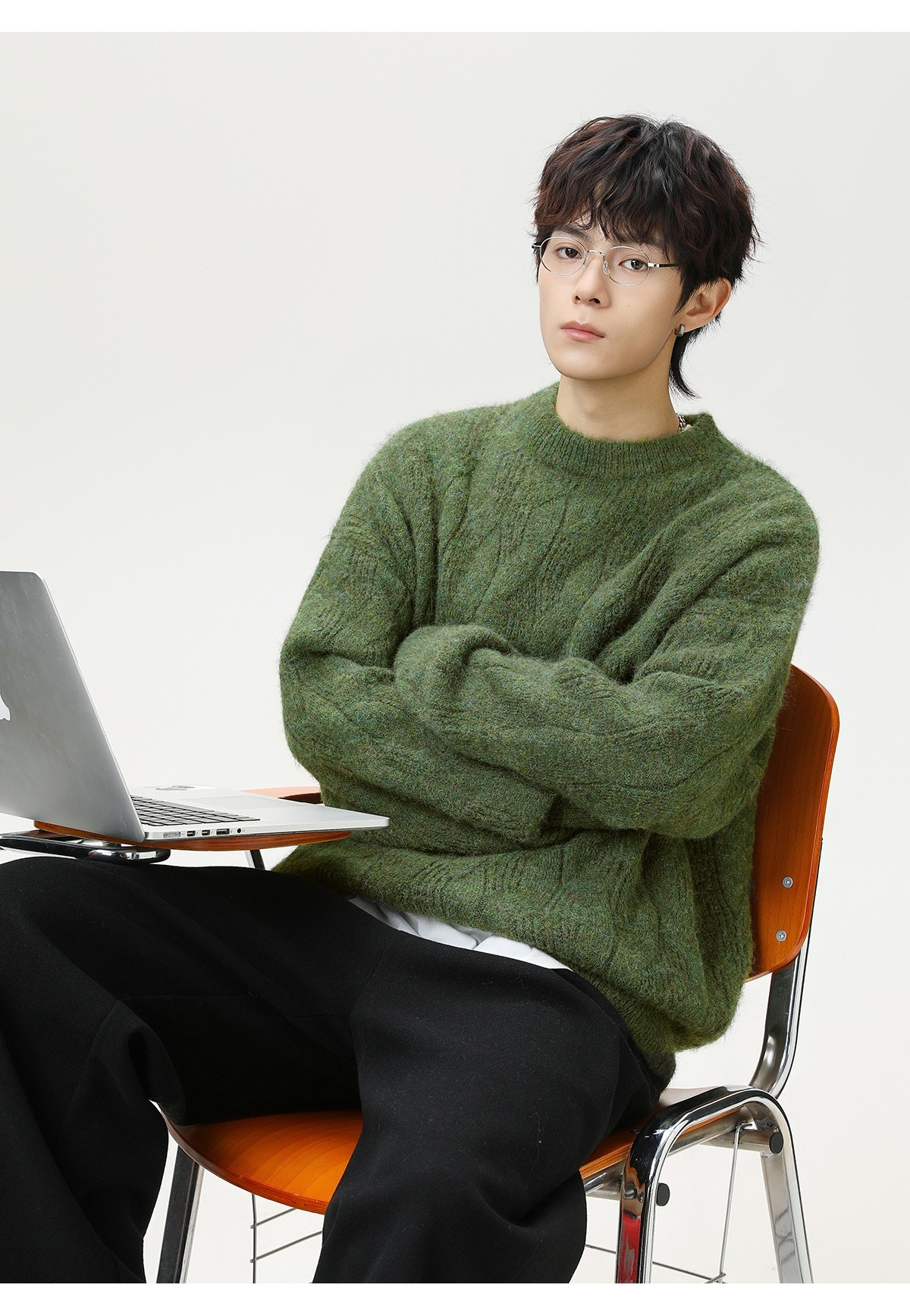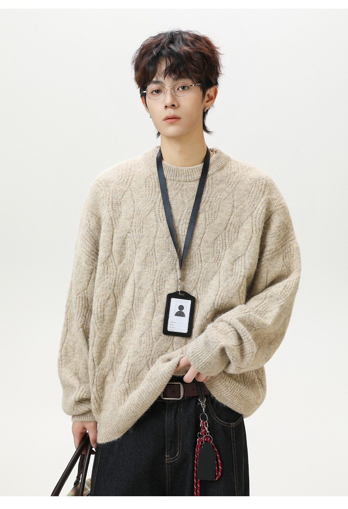 【復古大紋花肌理】秋冬加厚質感純色圓領毛衣寬鬆肌理男士針織衫