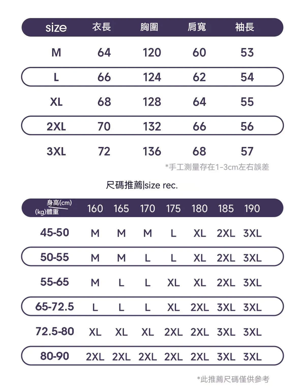 尺碼說明