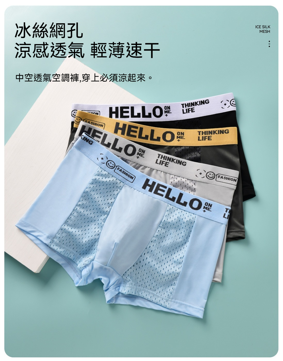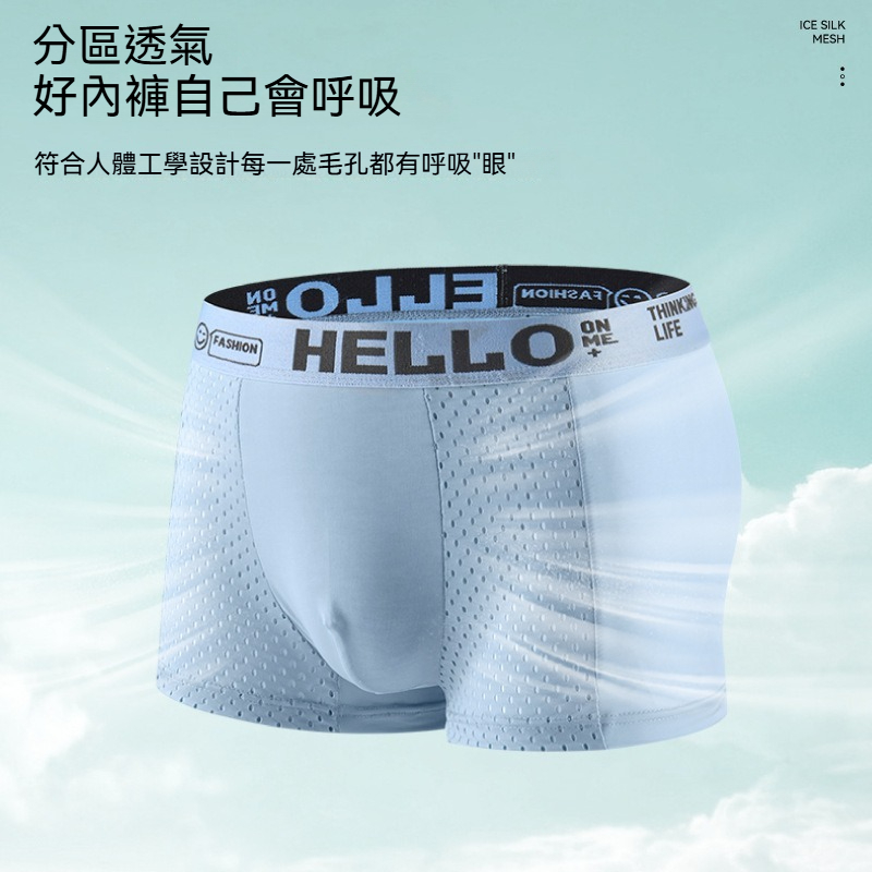 【改良版吸濕排汗面料】透氣冰絲網孔U凸大囊袋男士平角内褲