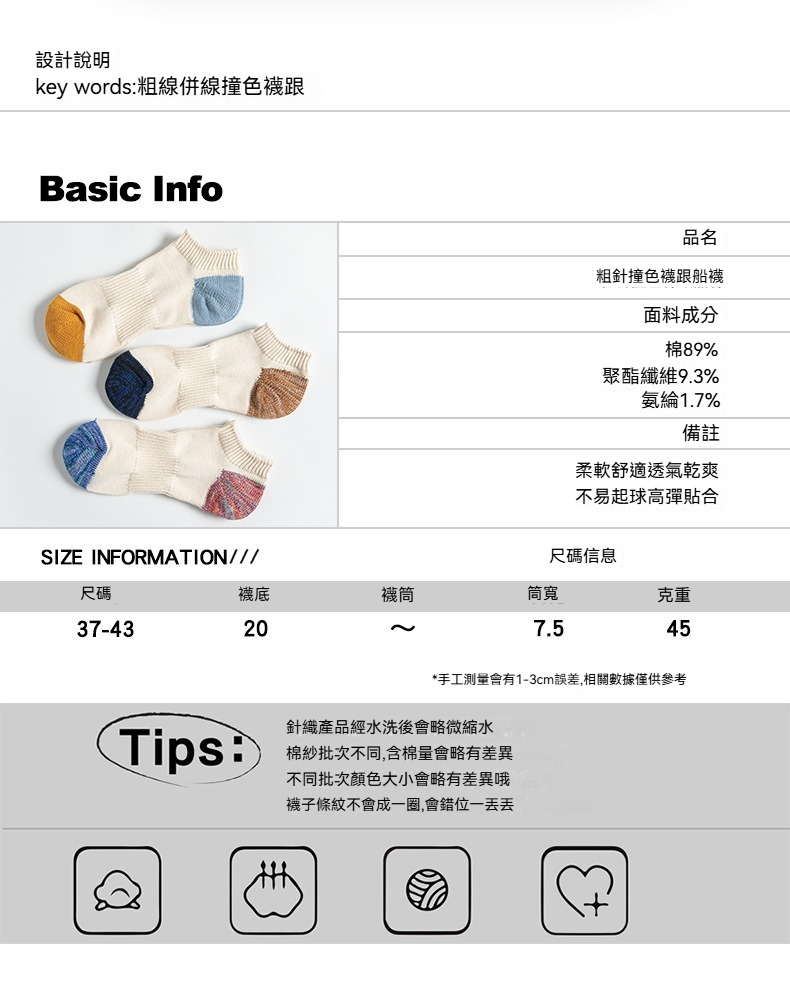 【日系復古風】ins潮牌粗綫短襪低幫街頭戶外拼色船襪