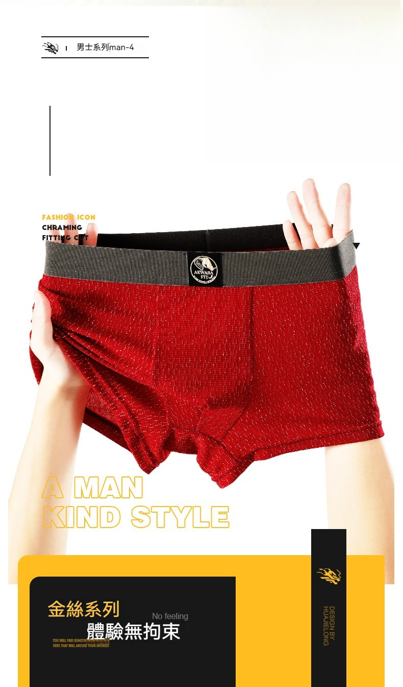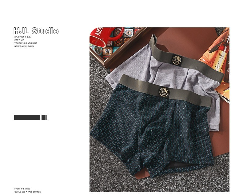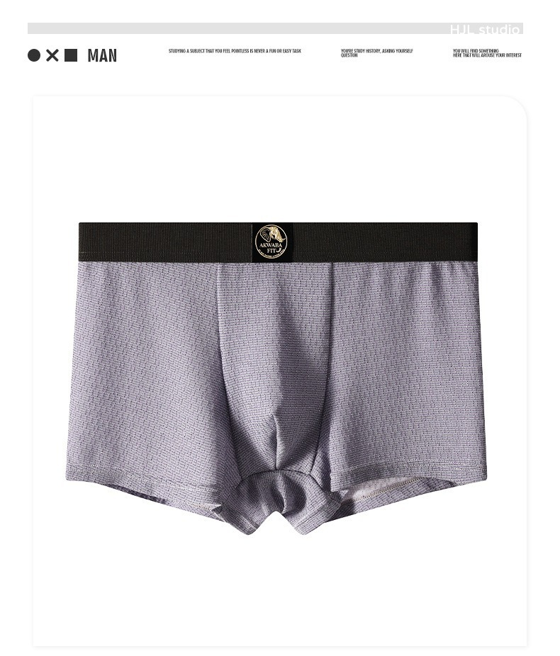 【時尚金絲紋理】透氣柔軟棉中腰純色金絲紋理男士平角内褲