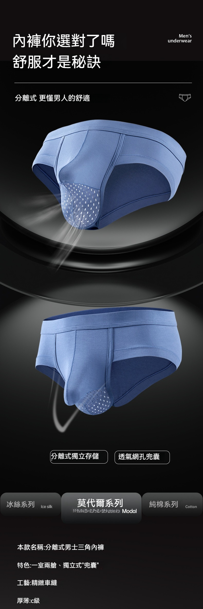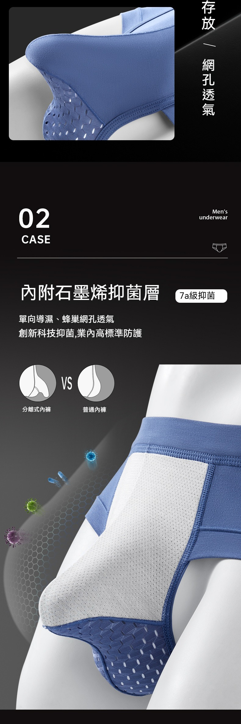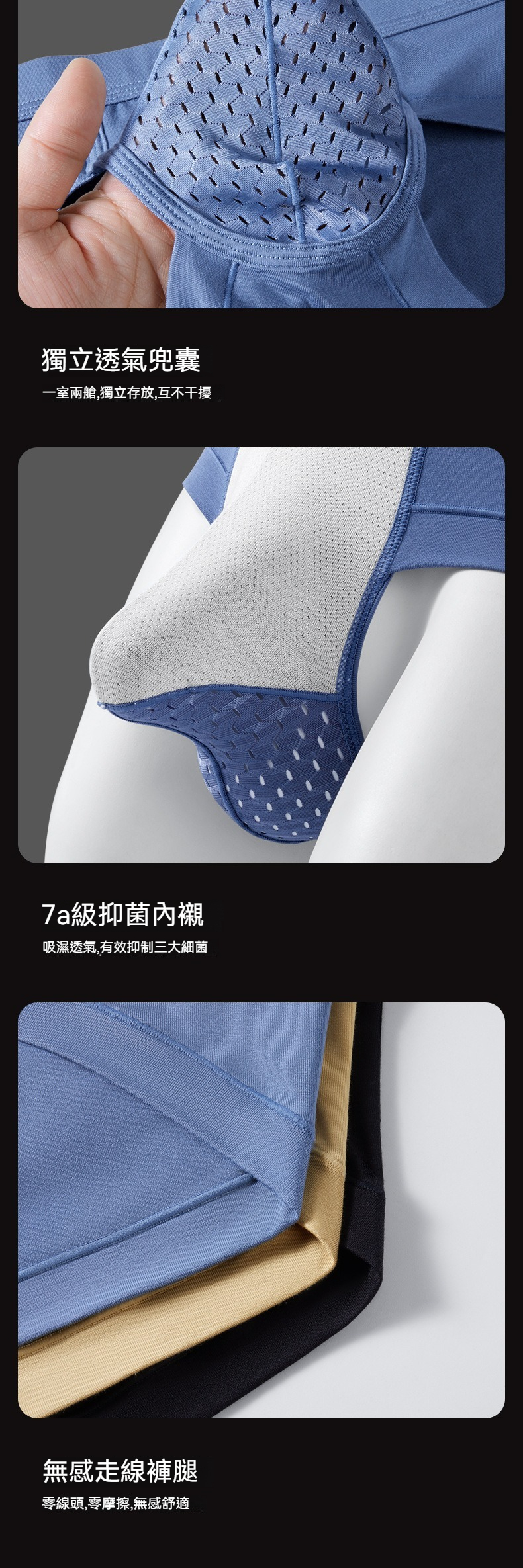 【會呼吸的U凸空間】輕薄透氣網眼槍彈分離男士三角內褲