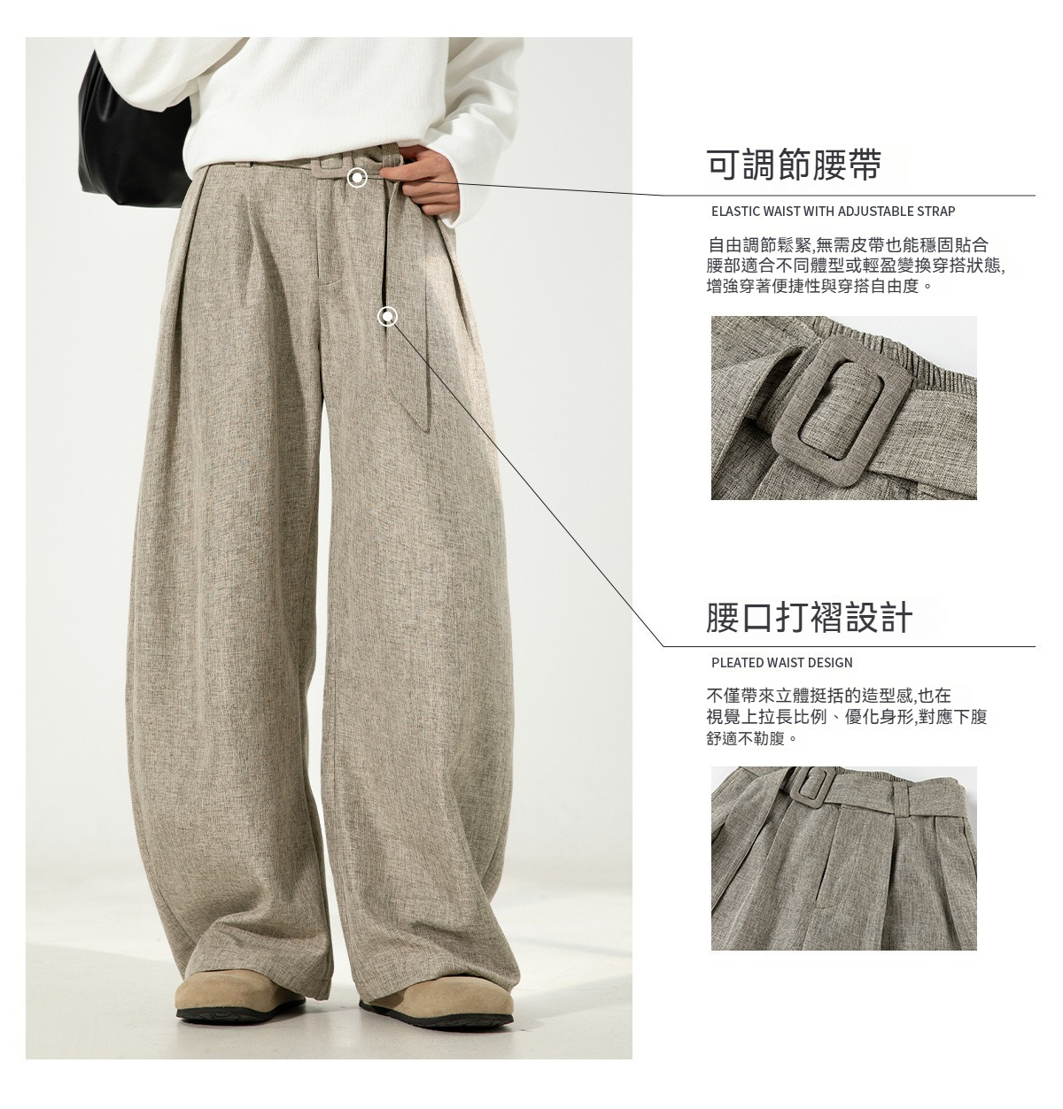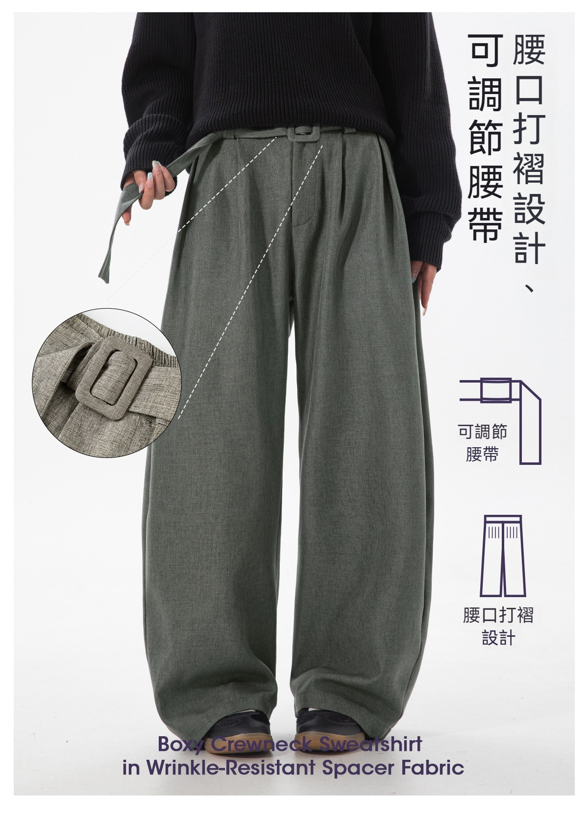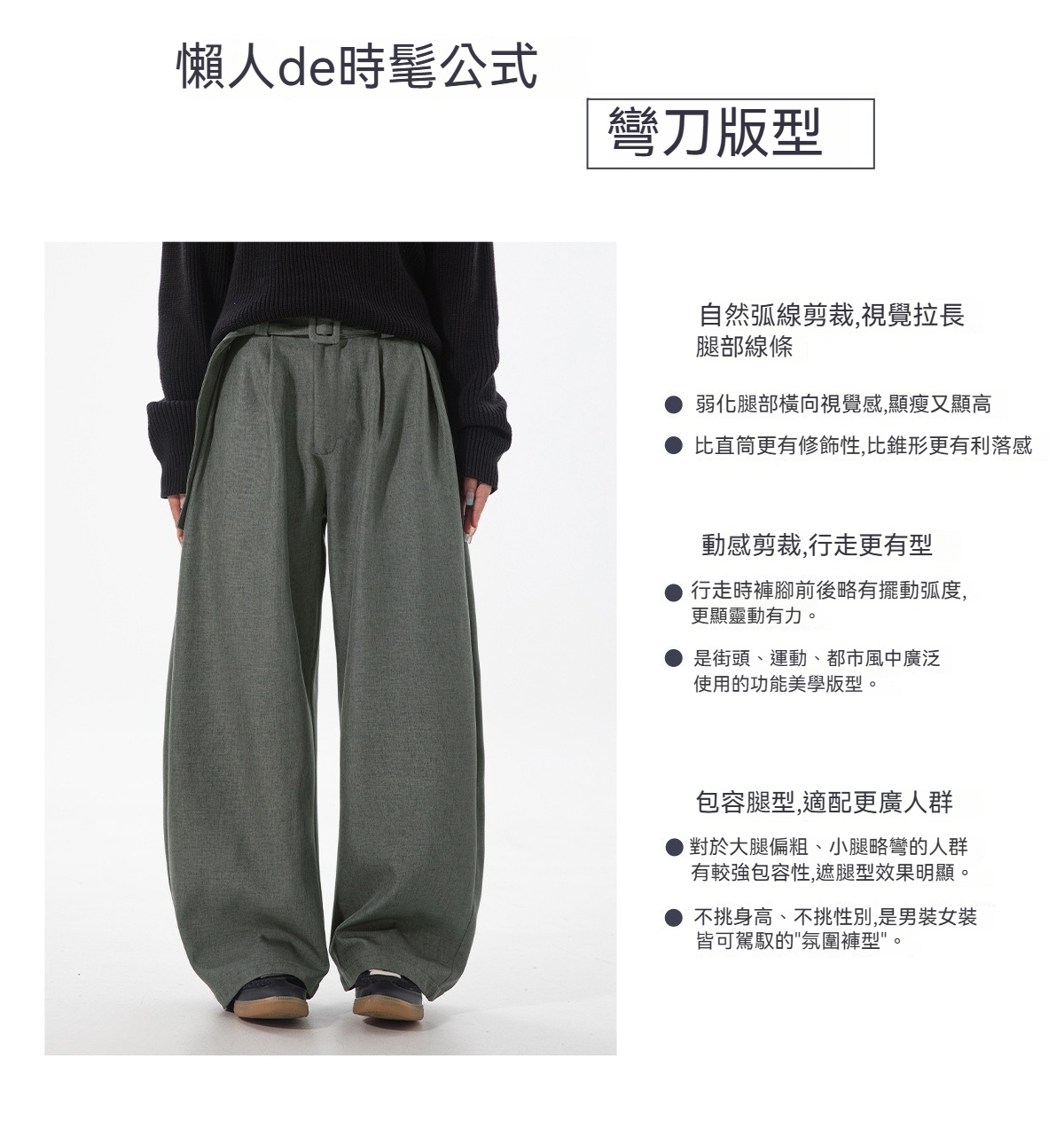 【潮流彎刀版型】垂感彎刀立體打褶腰帶男士休閑長褲
