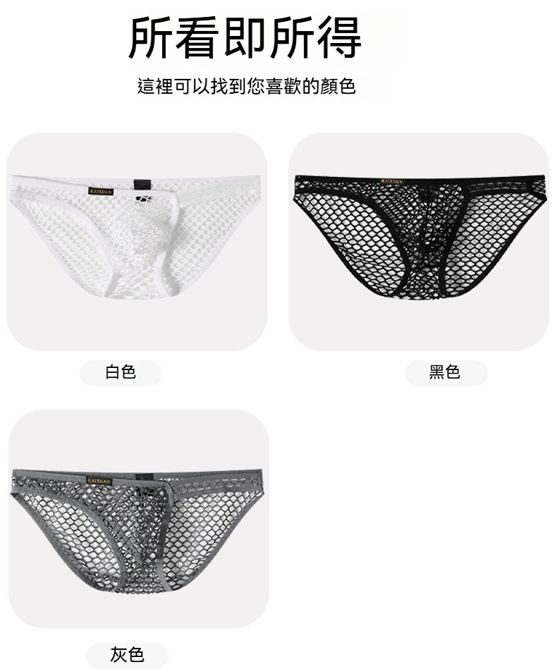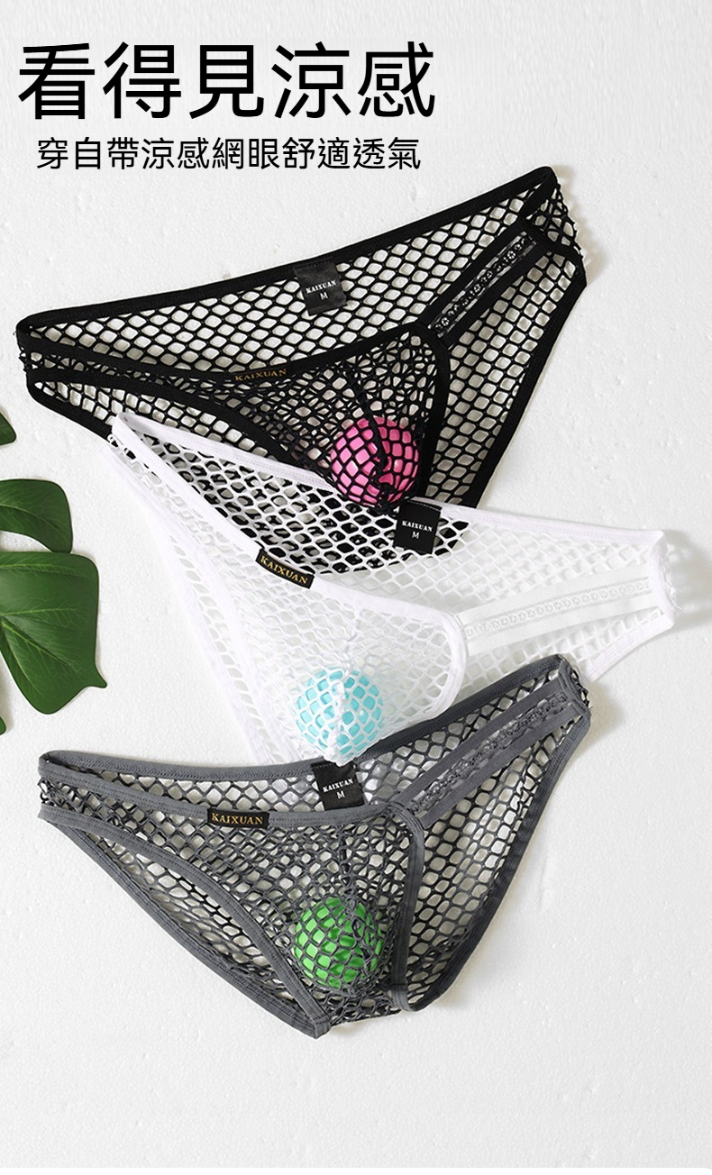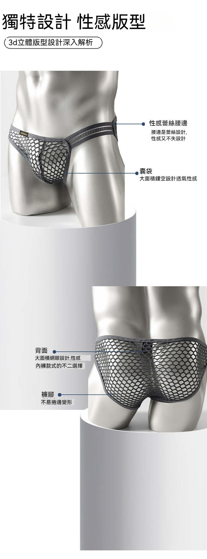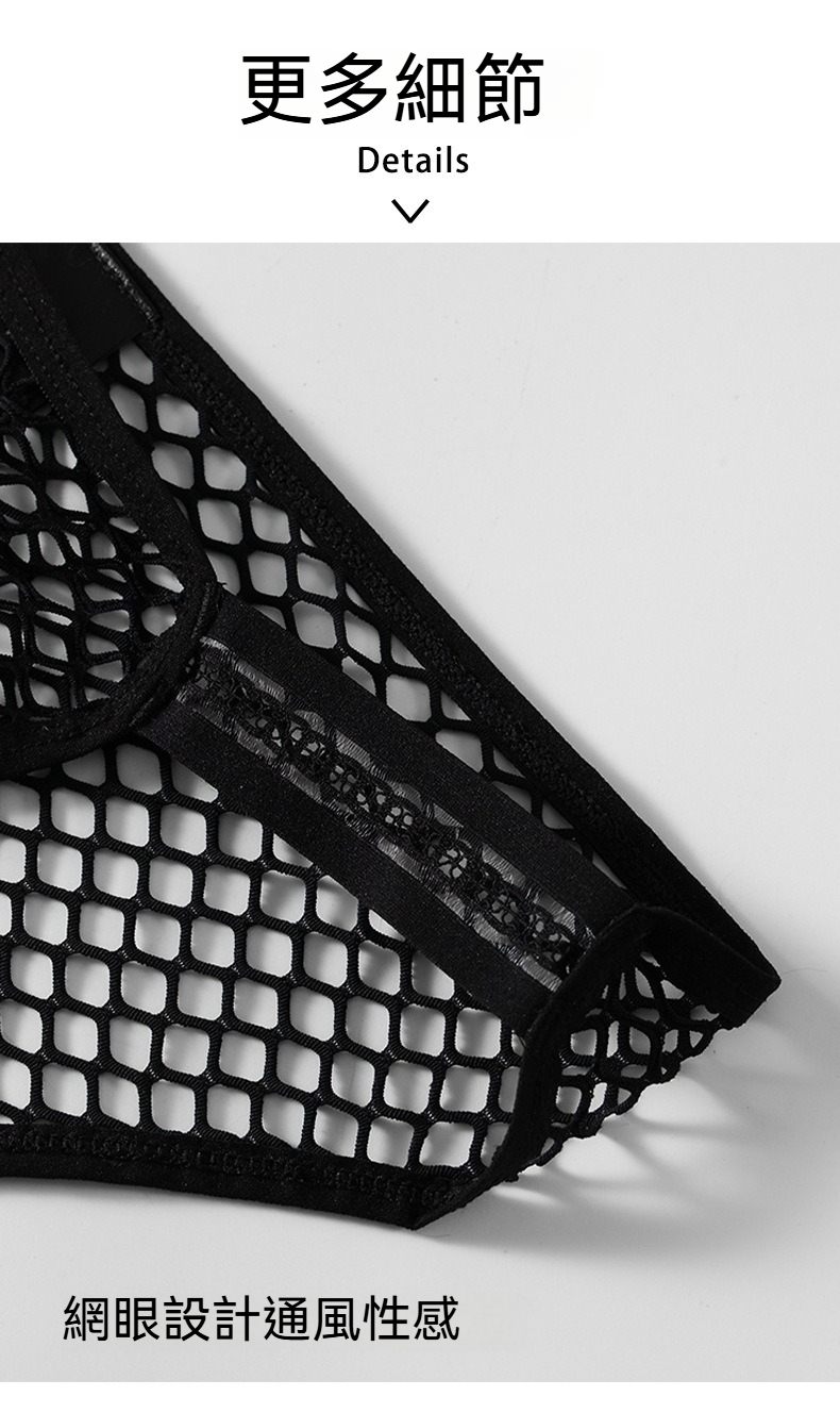 【看得見的清涼】性感蕾絲腰邊網眼透氣性感男士三角內褲
