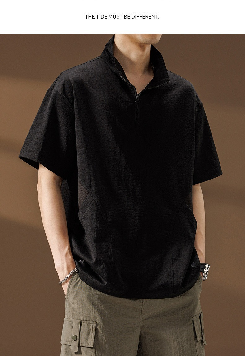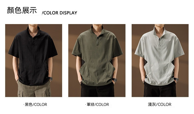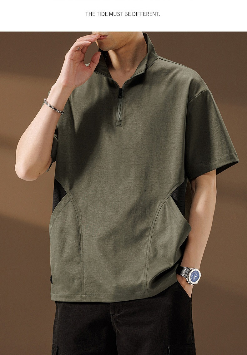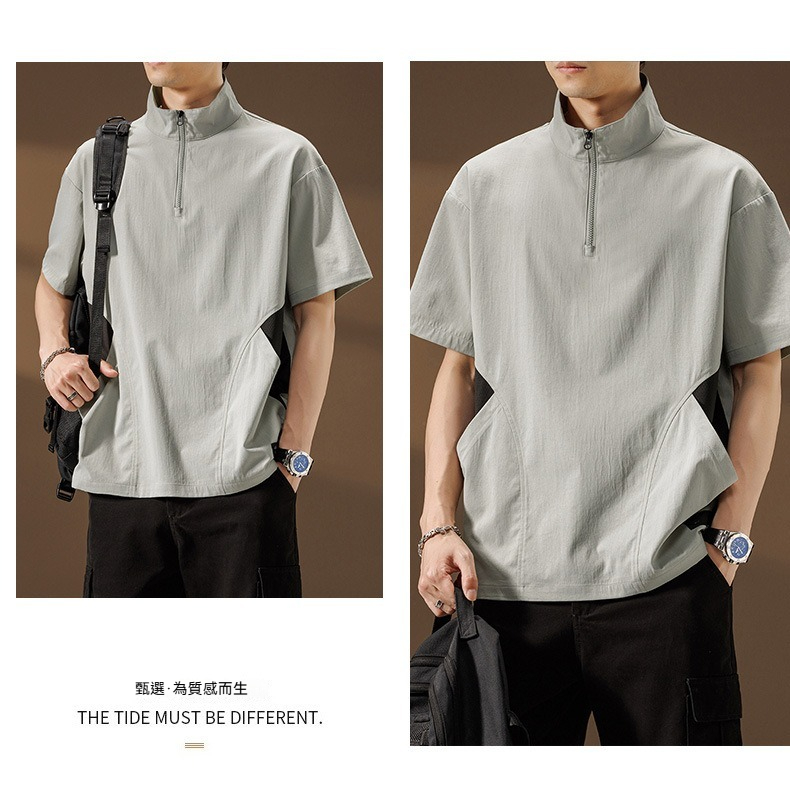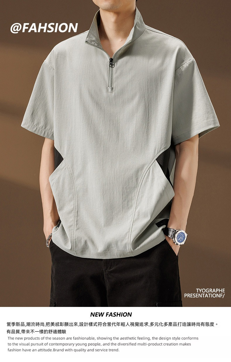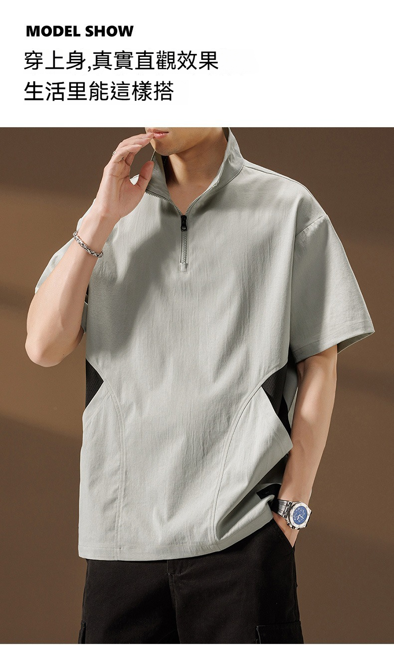 【簡約日系】夏季薄款冰絲速乾撞色口袋翻領男士T恤