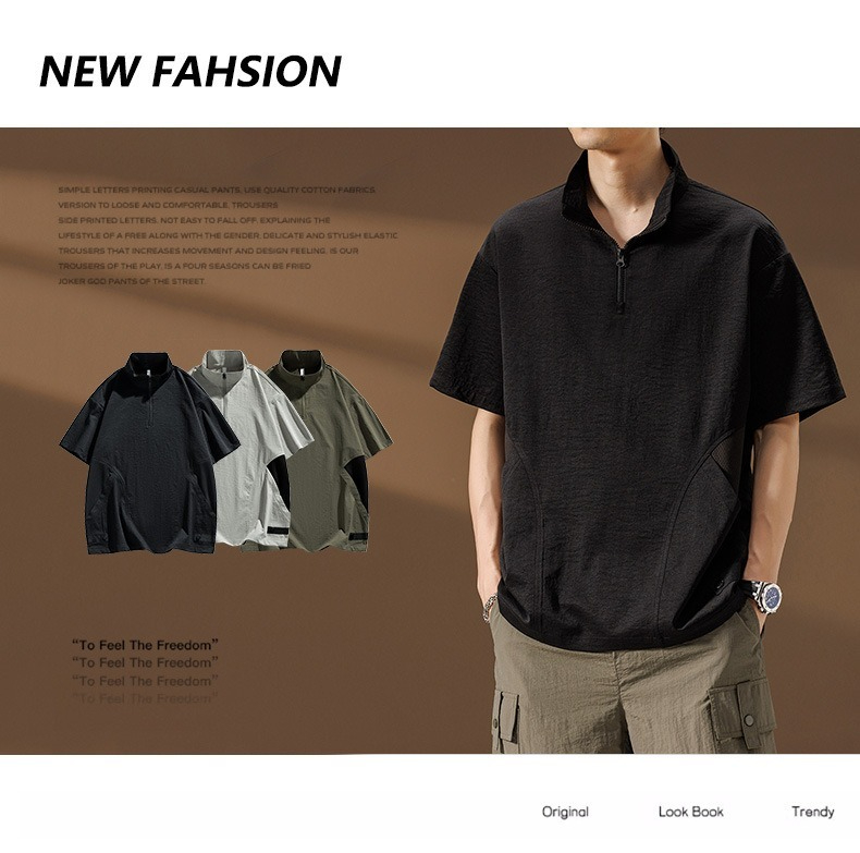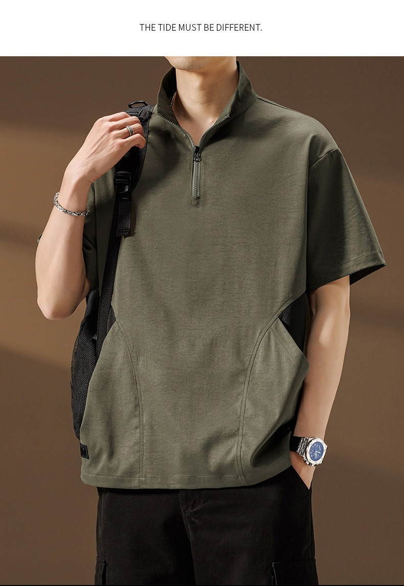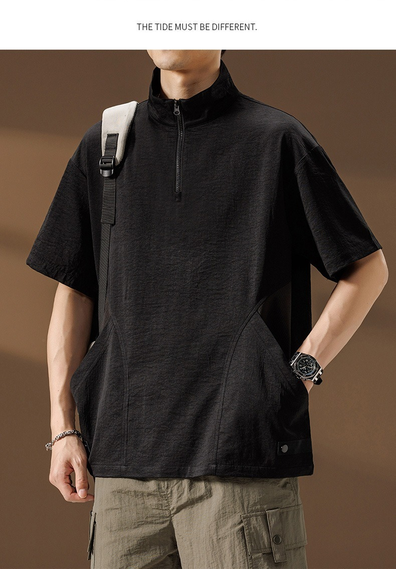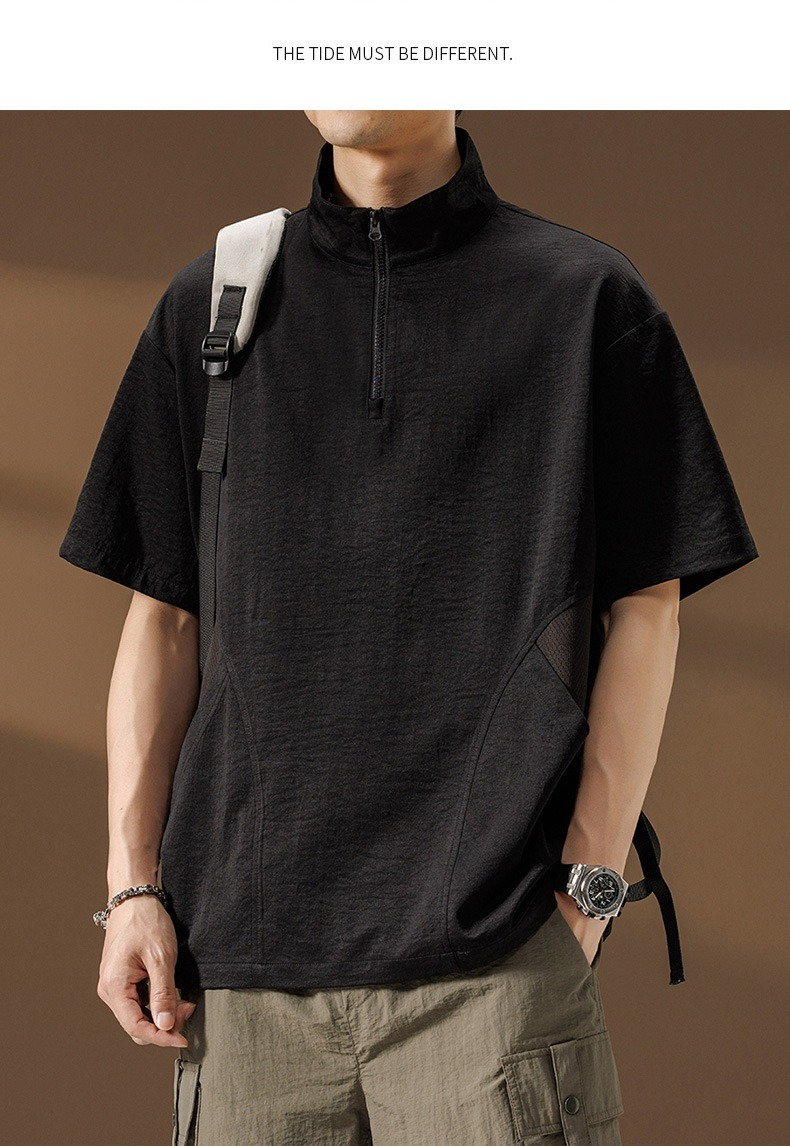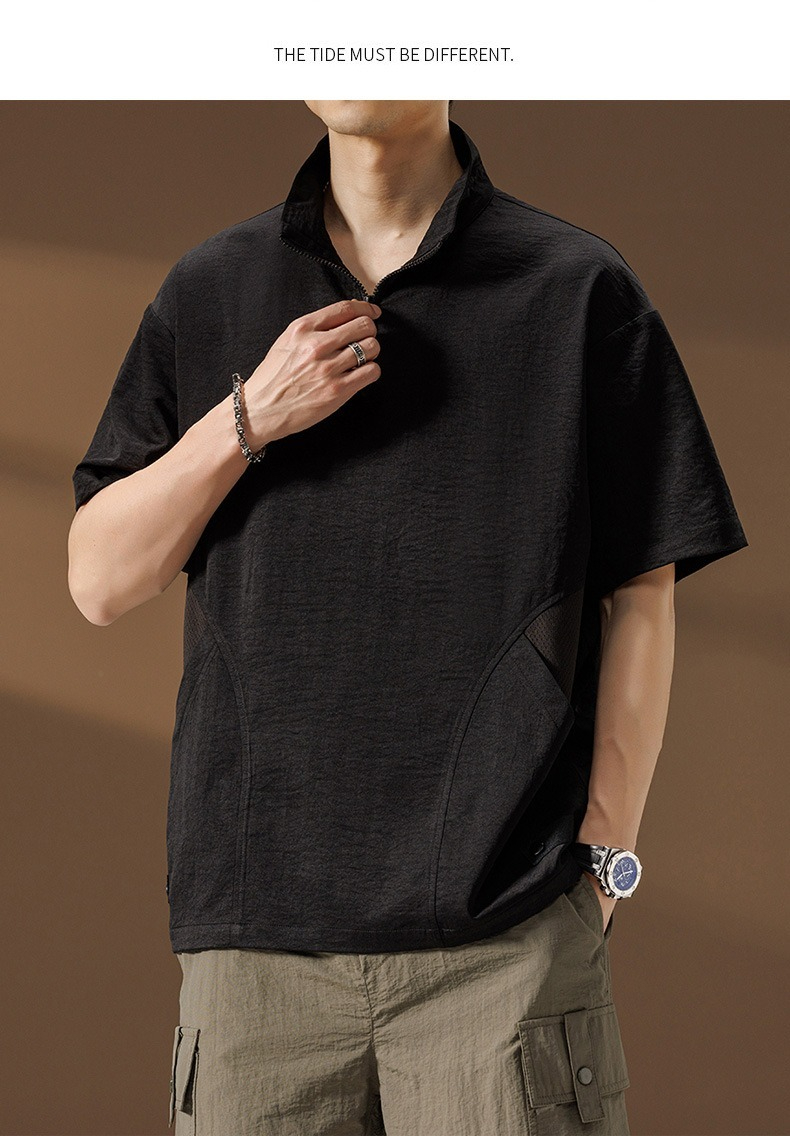 【簡約日系】夏季薄款冰絲速乾撞色口袋翻領男士T恤