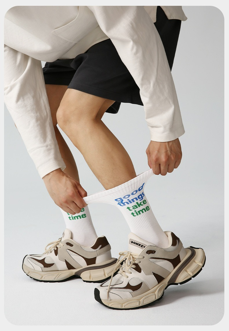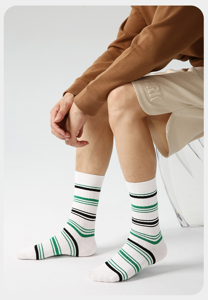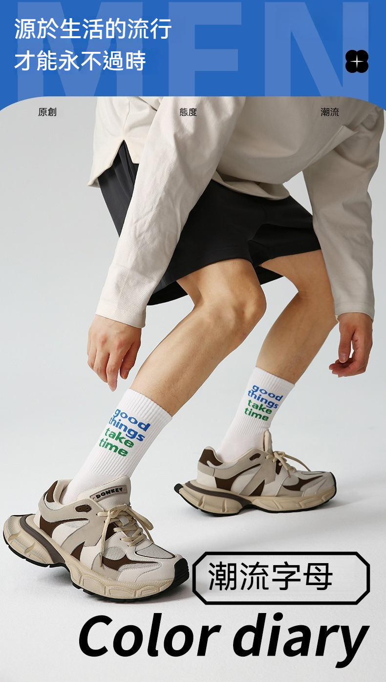 【經典字母條紋】3雙裝!文藝潮流小衆設計中筒運動襪男襪