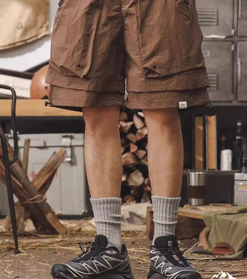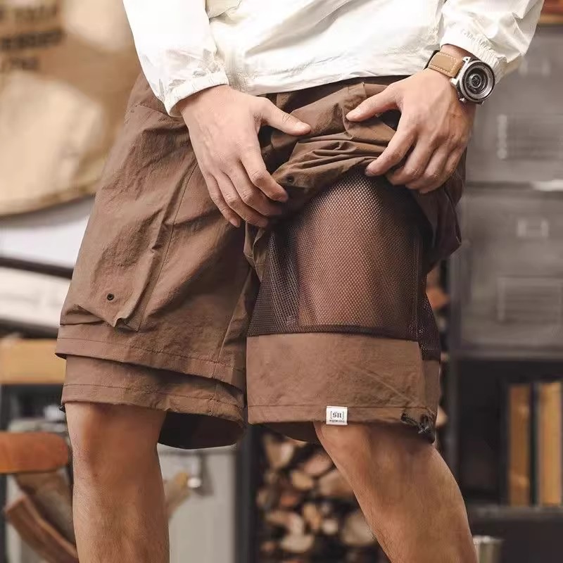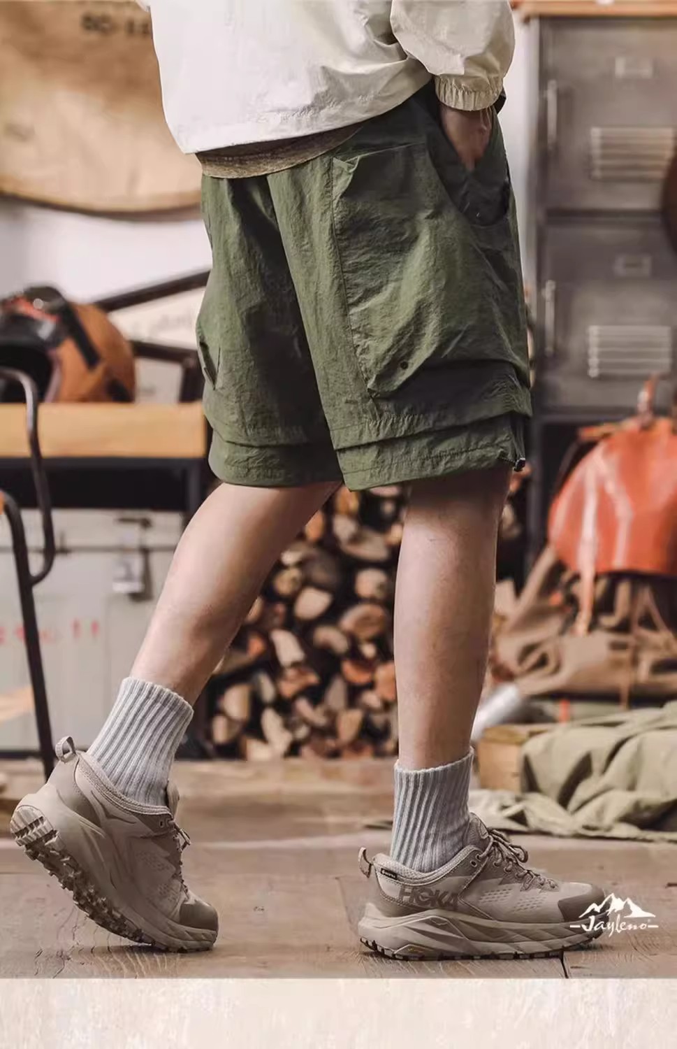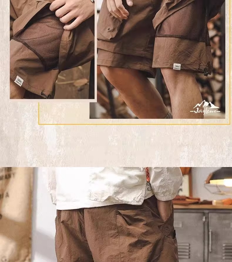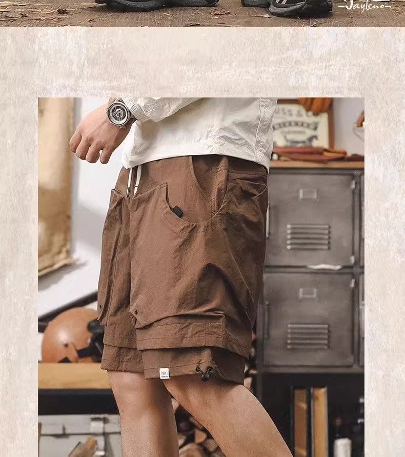 【美式山系戶外】假兩件戶外機能工裝短褲夏季薄款冰絲速乾大碼五分褲