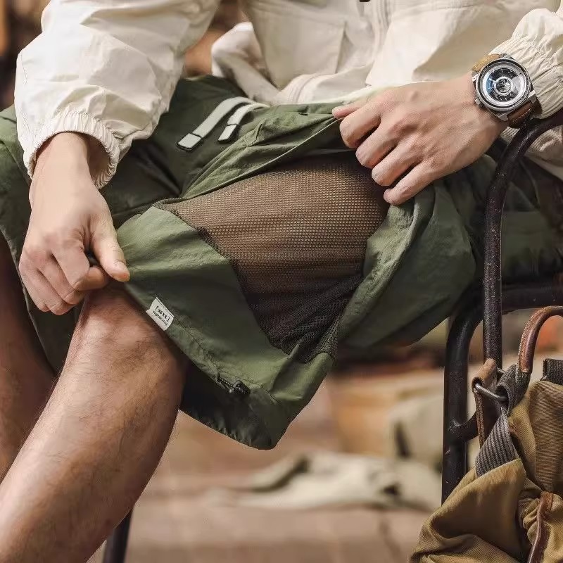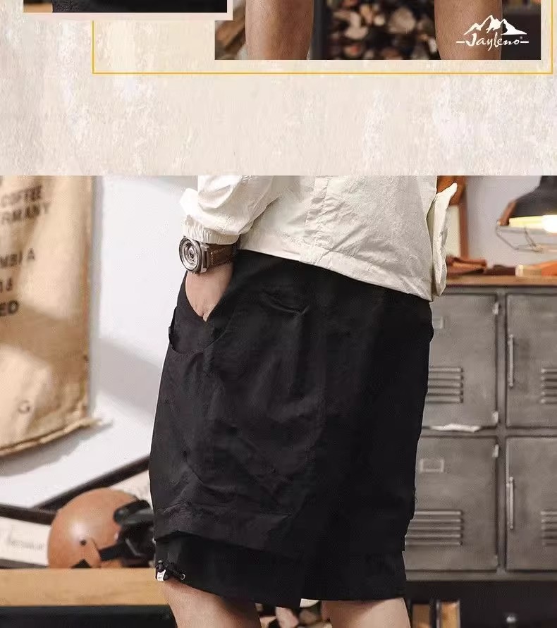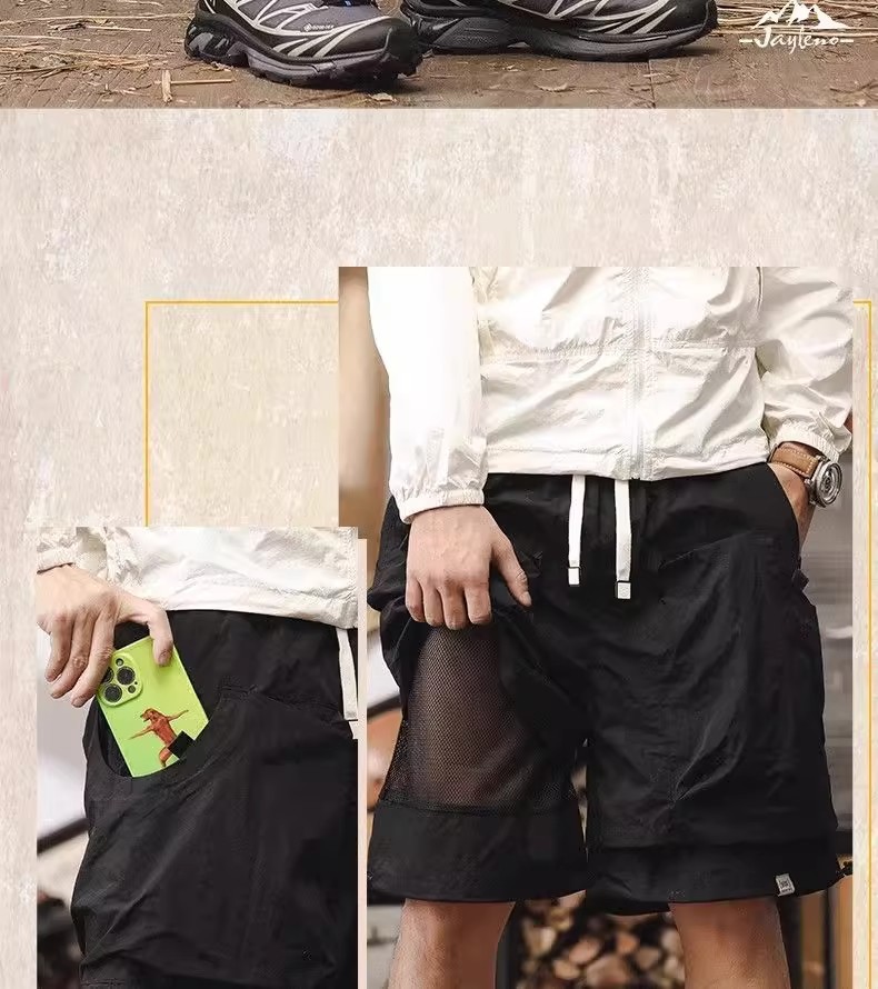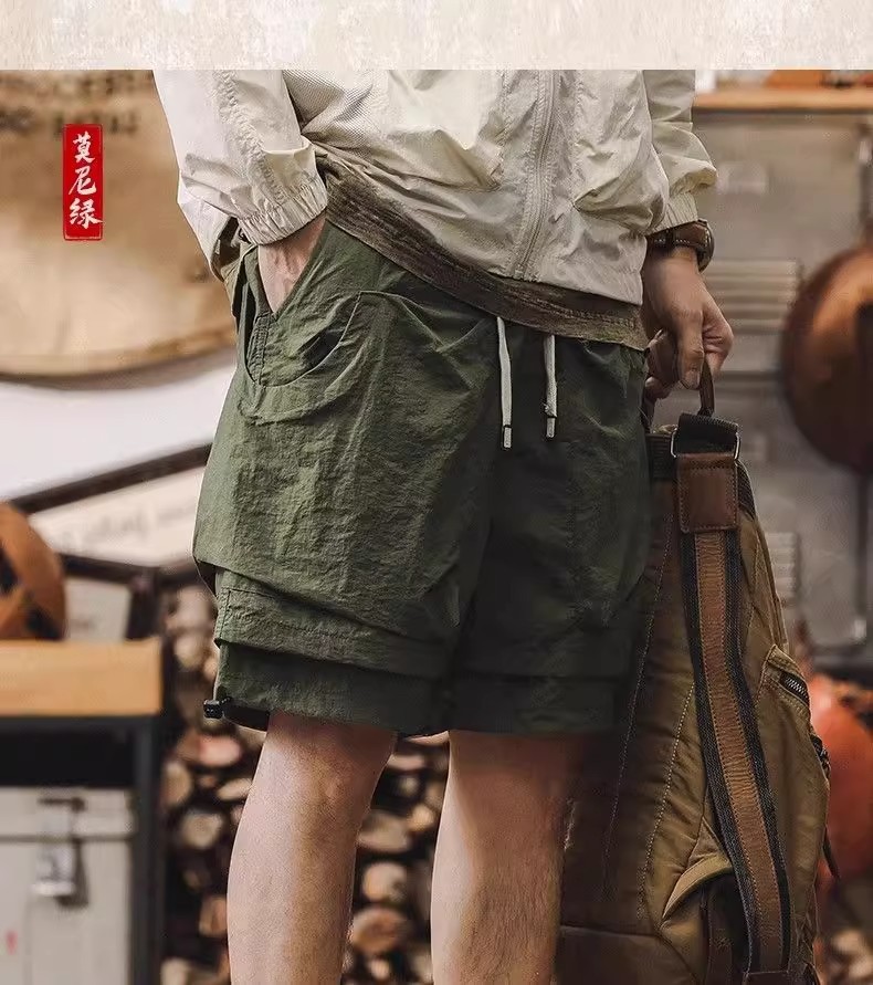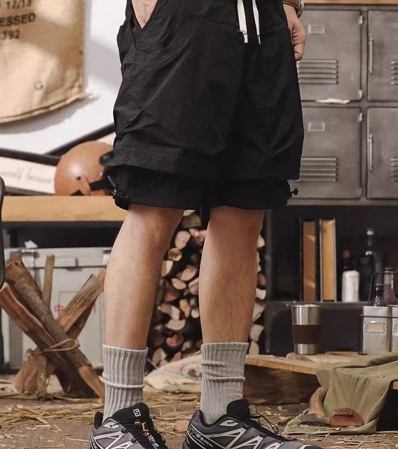 【美式山系戶外】假兩件戶外機能工裝短褲夏季薄款冰絲速乾大碼五分褲