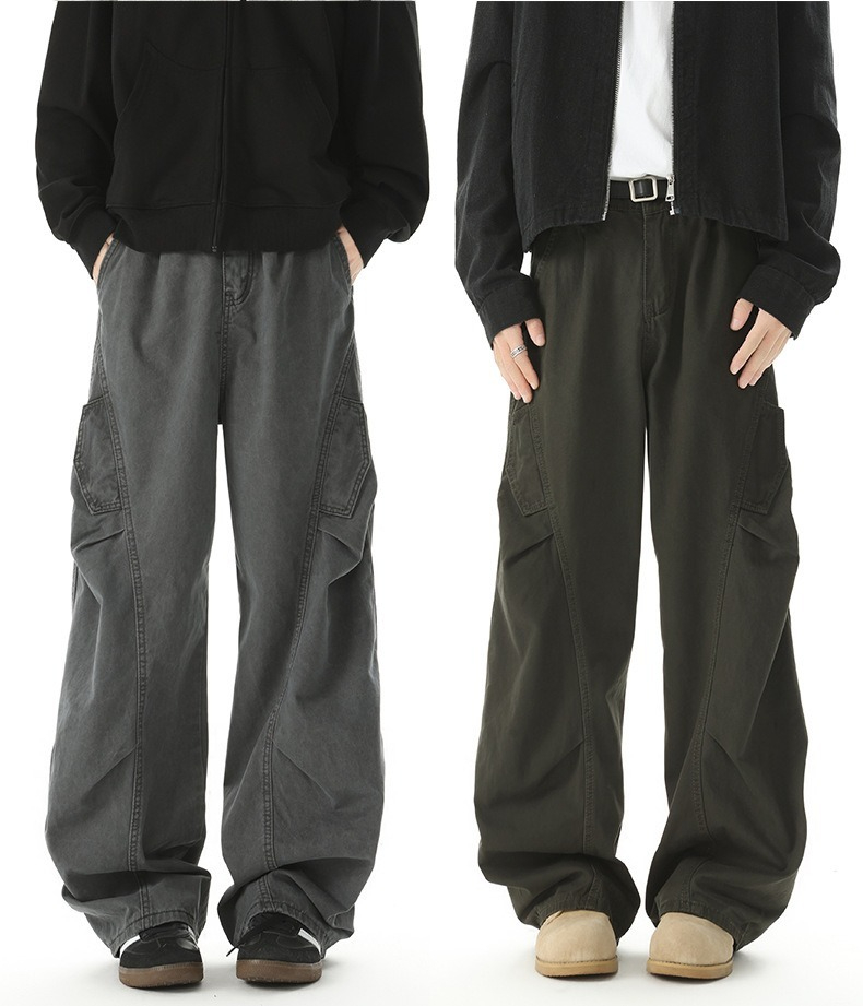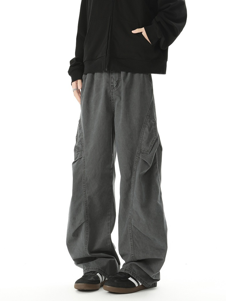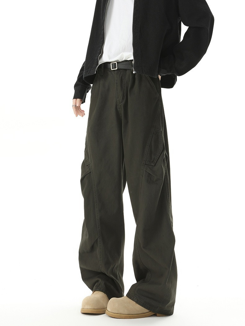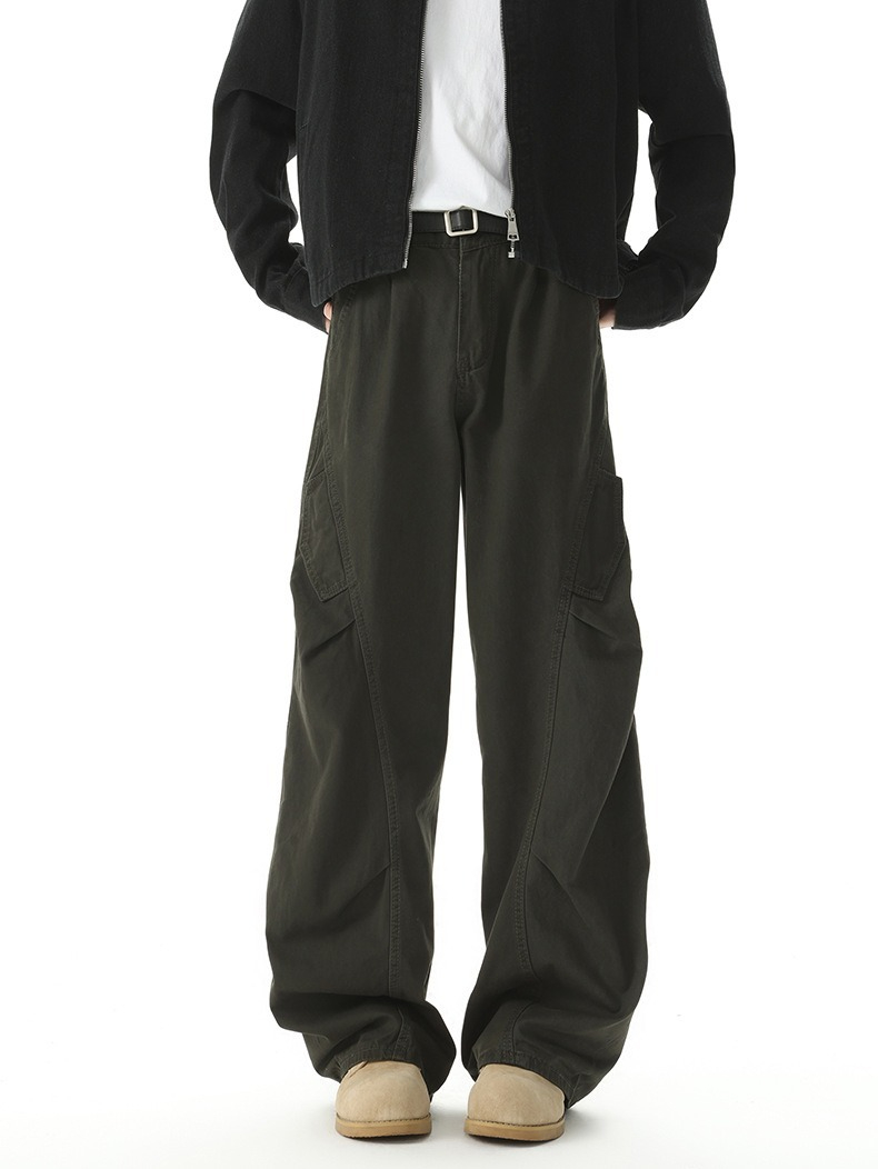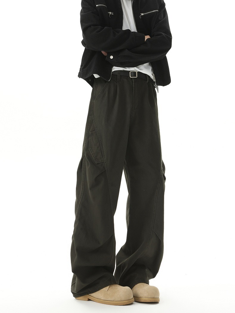 【美式工裝彎刀】立體打褶垂感彎刀寬鬆美式工裝男士休閑直筒長褲