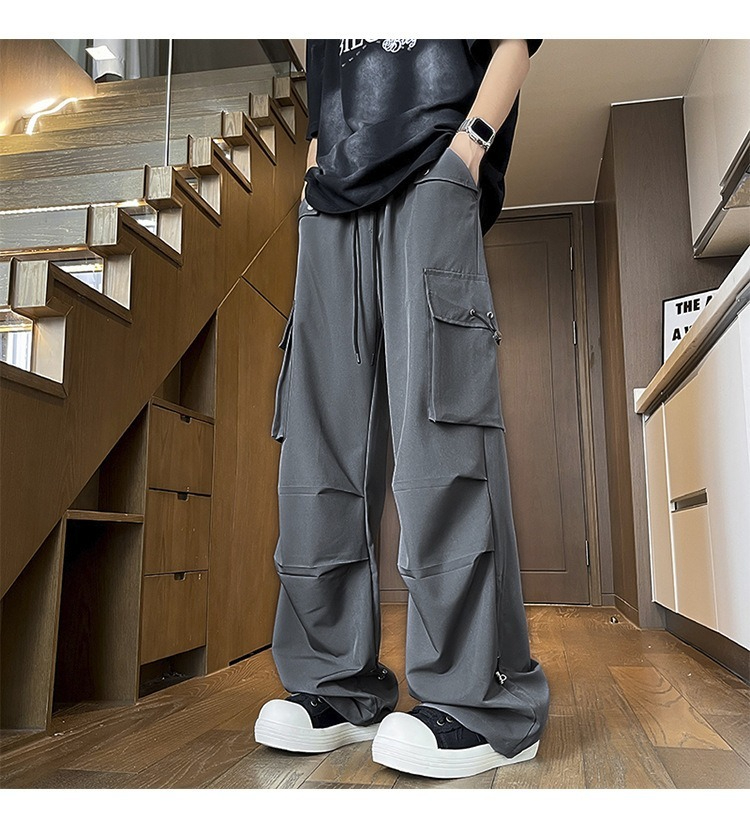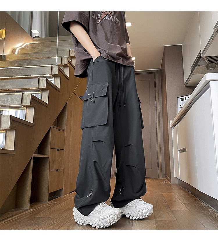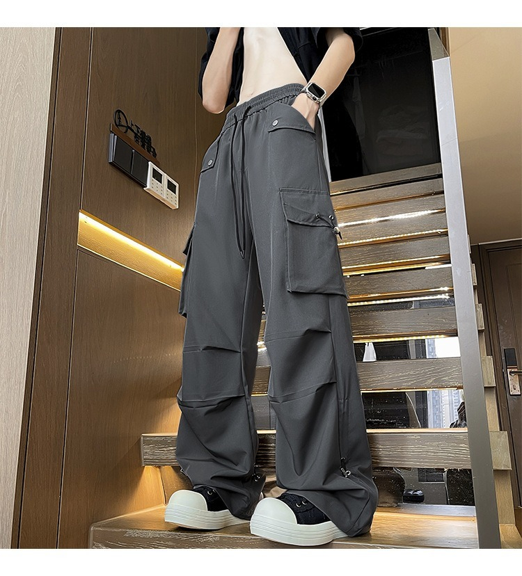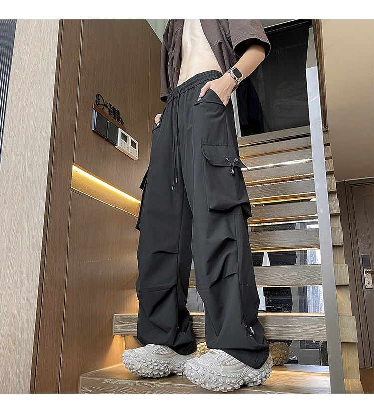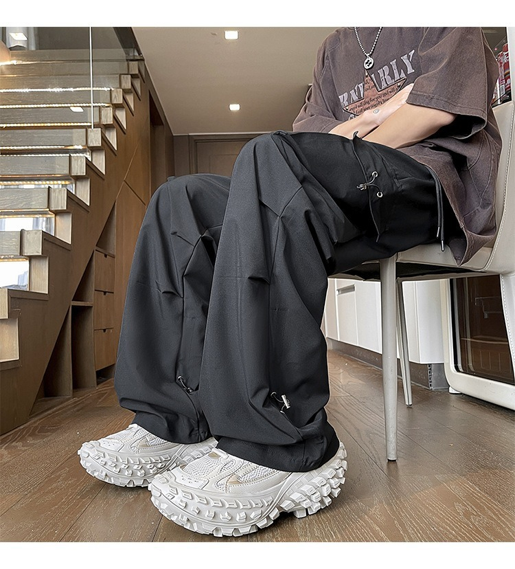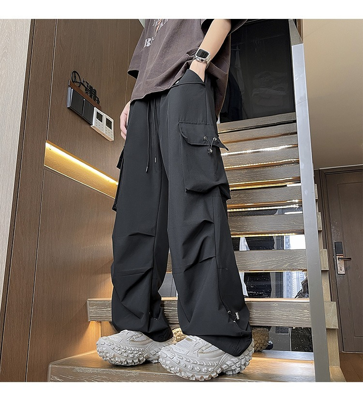 【美式潮流設計】春夏防水大碼衝鋒褲抽繩工裝褲