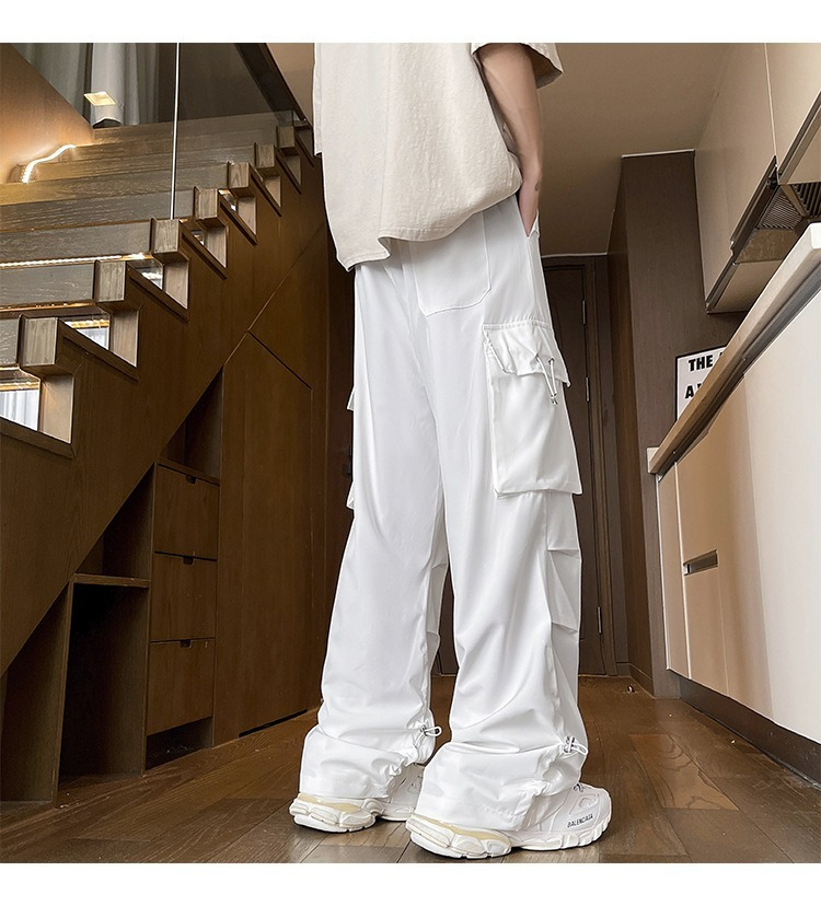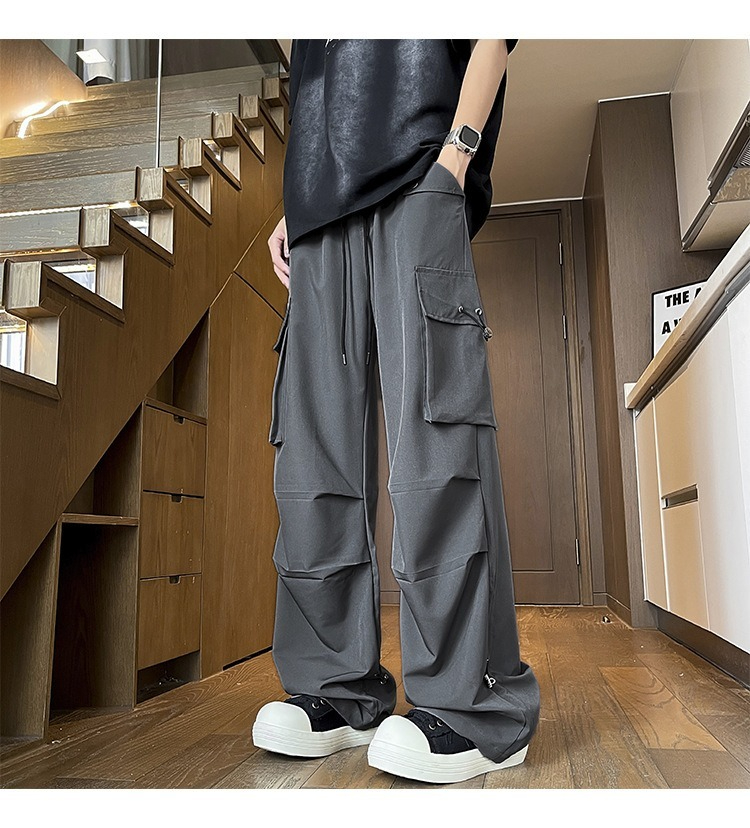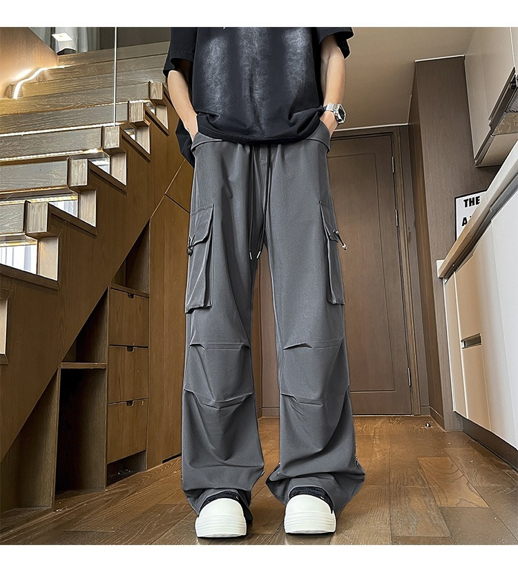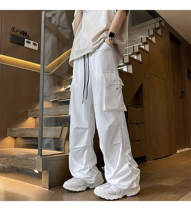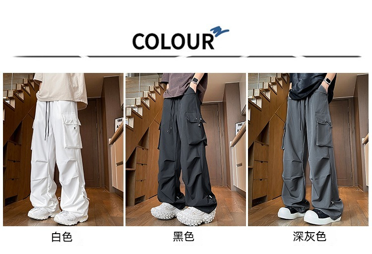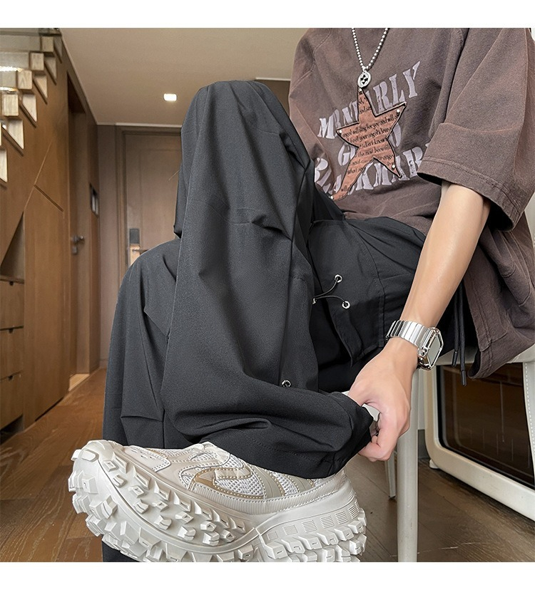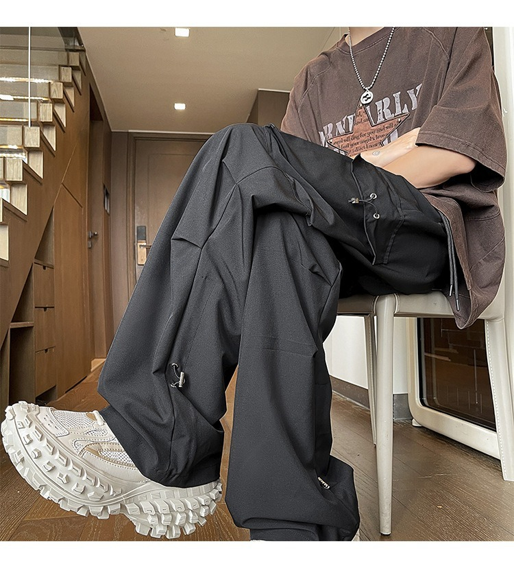 【美式潮流設計】春夏防水大碼衝鋒褲抽繩工裝褲