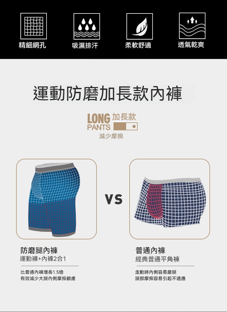 【自由運動系列】2025夏季新款加長款中腰防磨腿跑步健身運動內褲