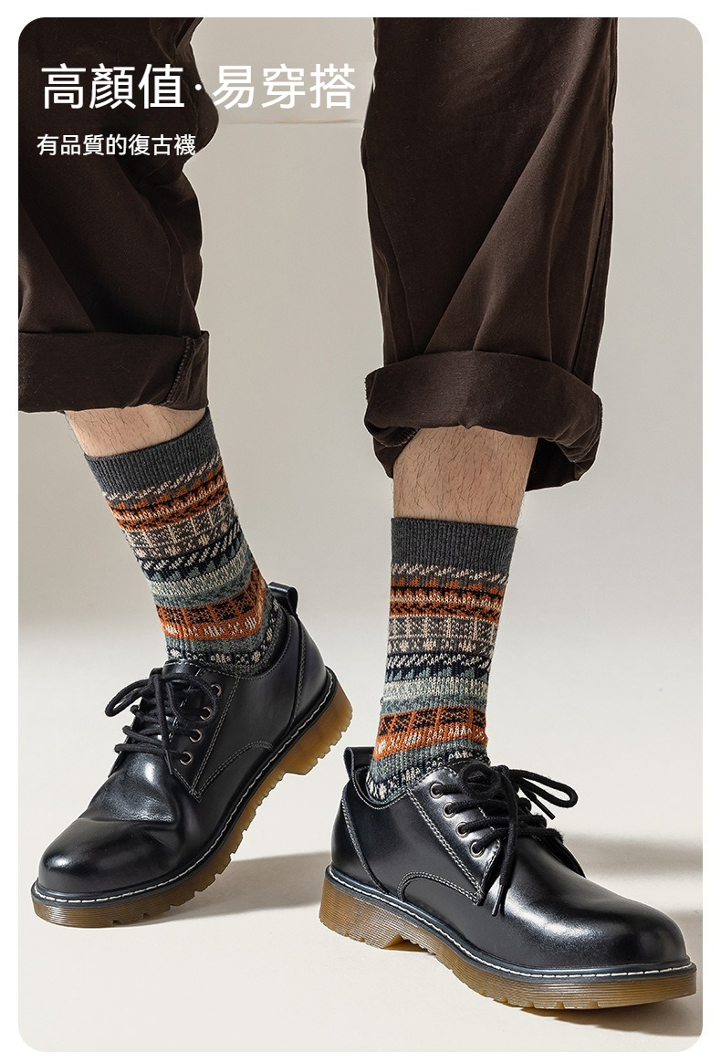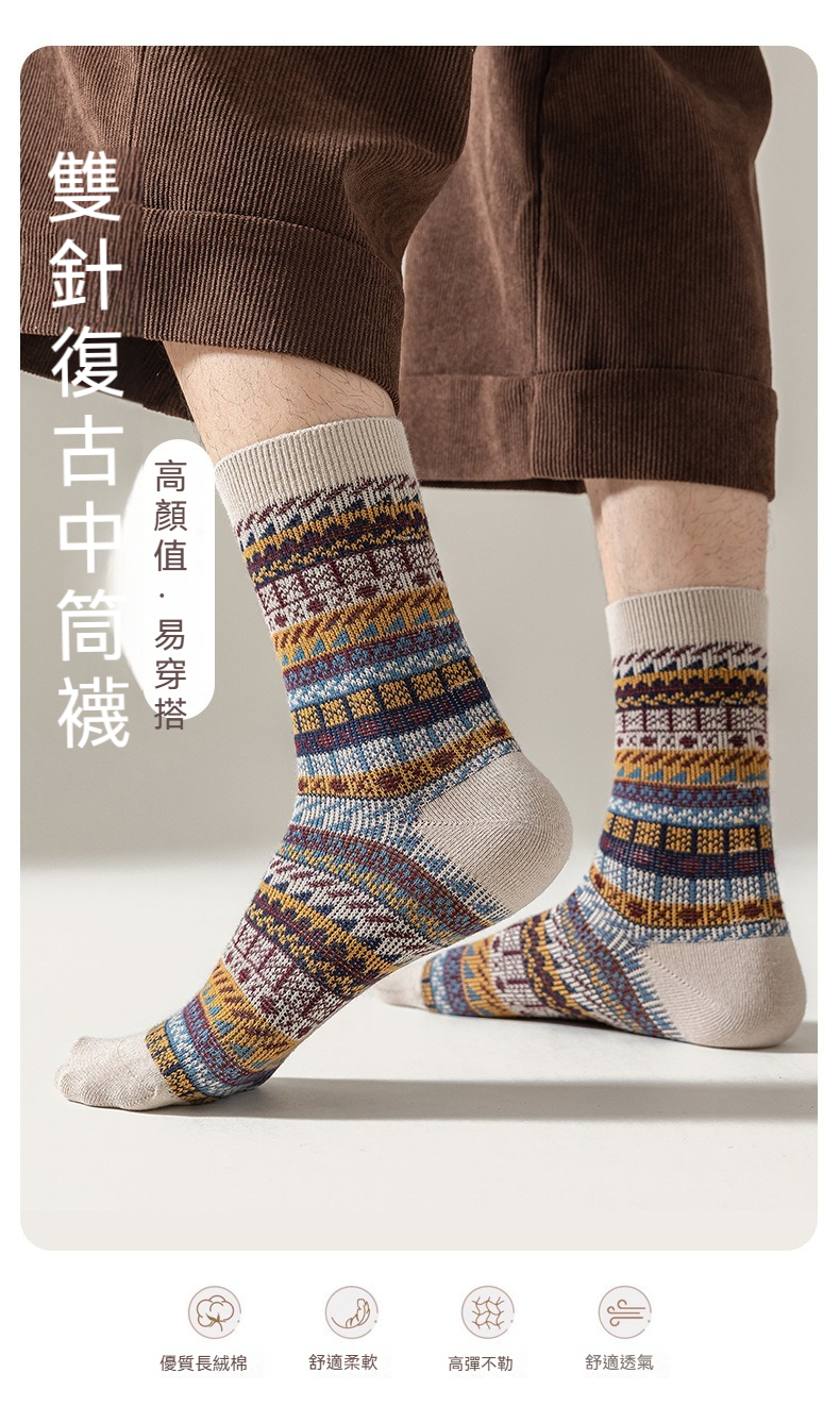 【英倫復古風】輕奢潮流雙針透氣抑菌防臭男士中筒襪