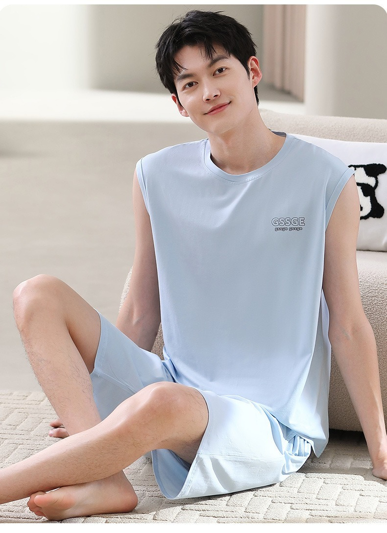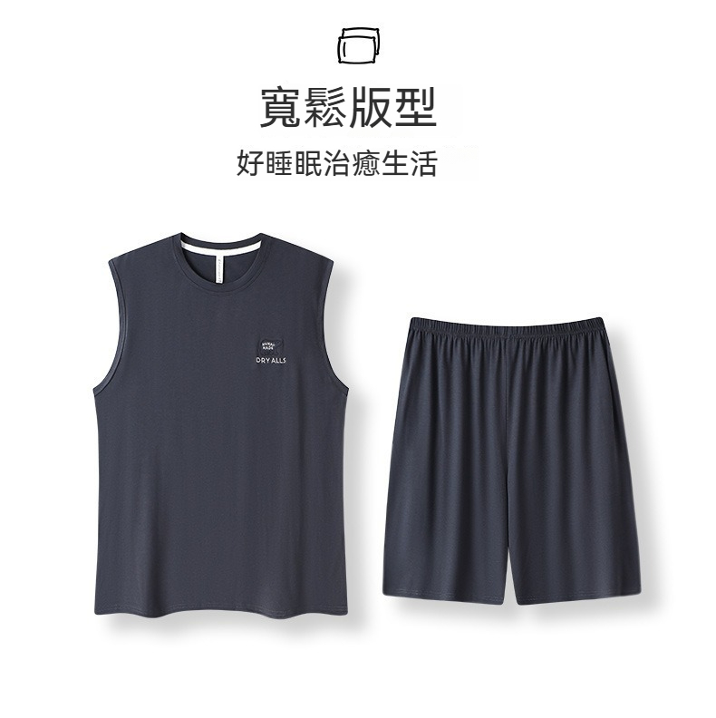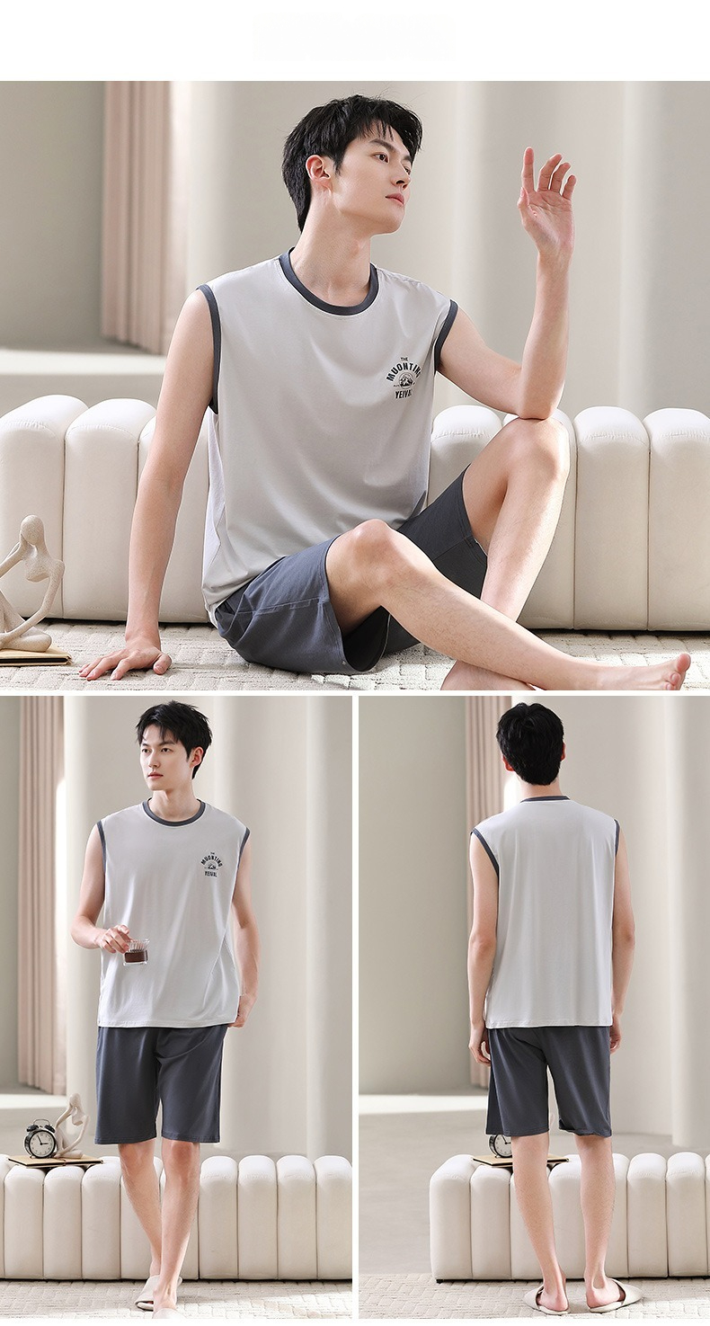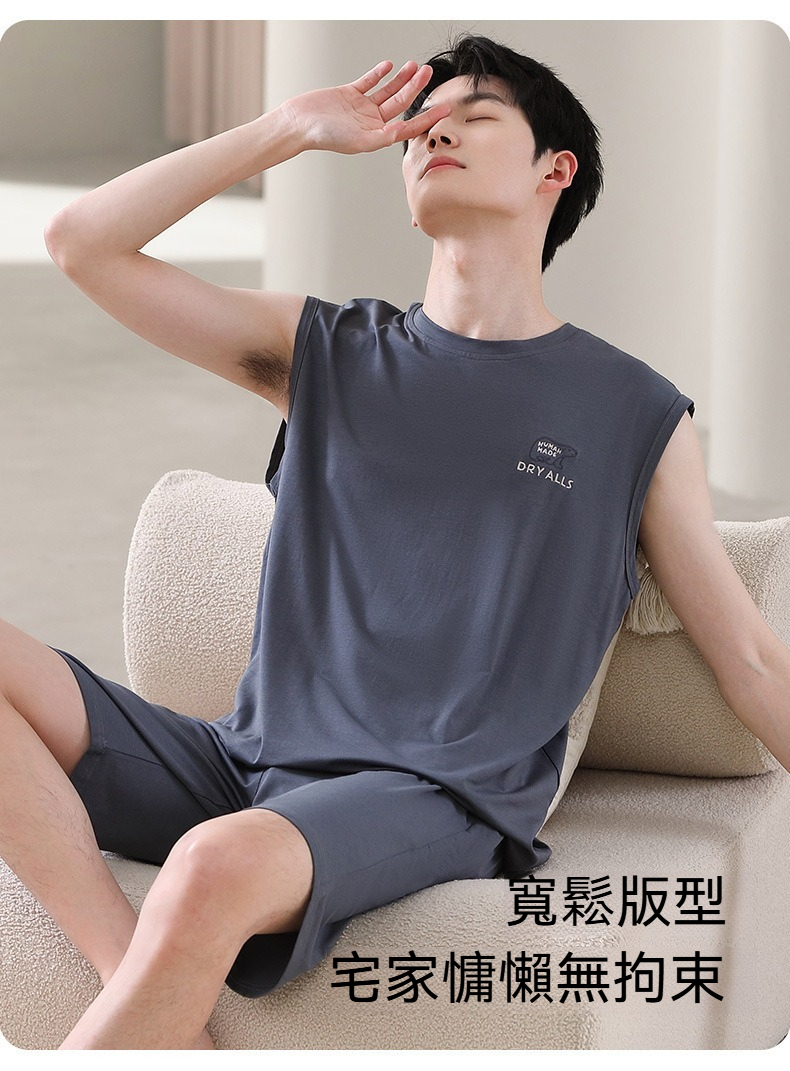 【親膚莫代爾】夏季莫代爾撞色背心無袖可外穿男士睡衣套裝