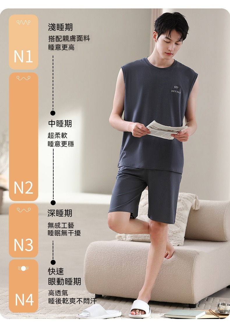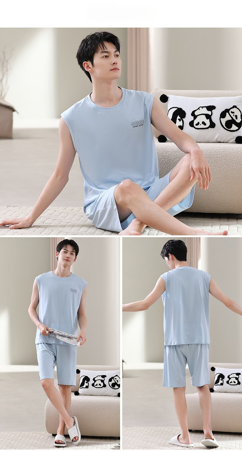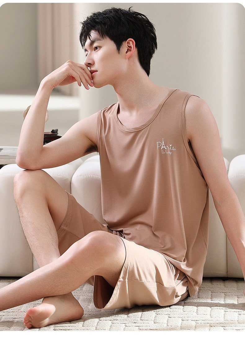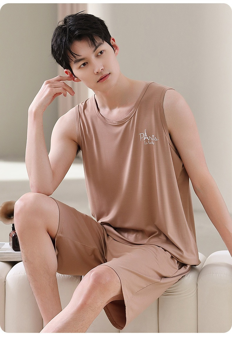 【親膚莫代爾】夏季莫代爾撞色背心無袖可外穿男士睡衣套裝
