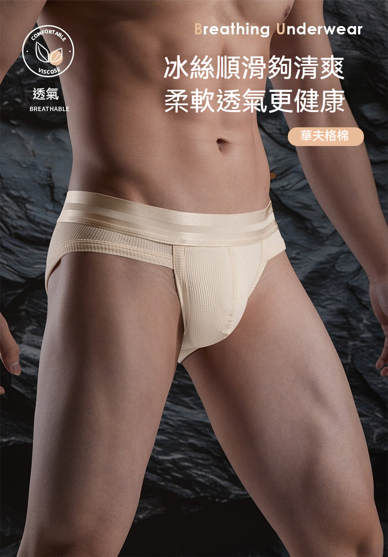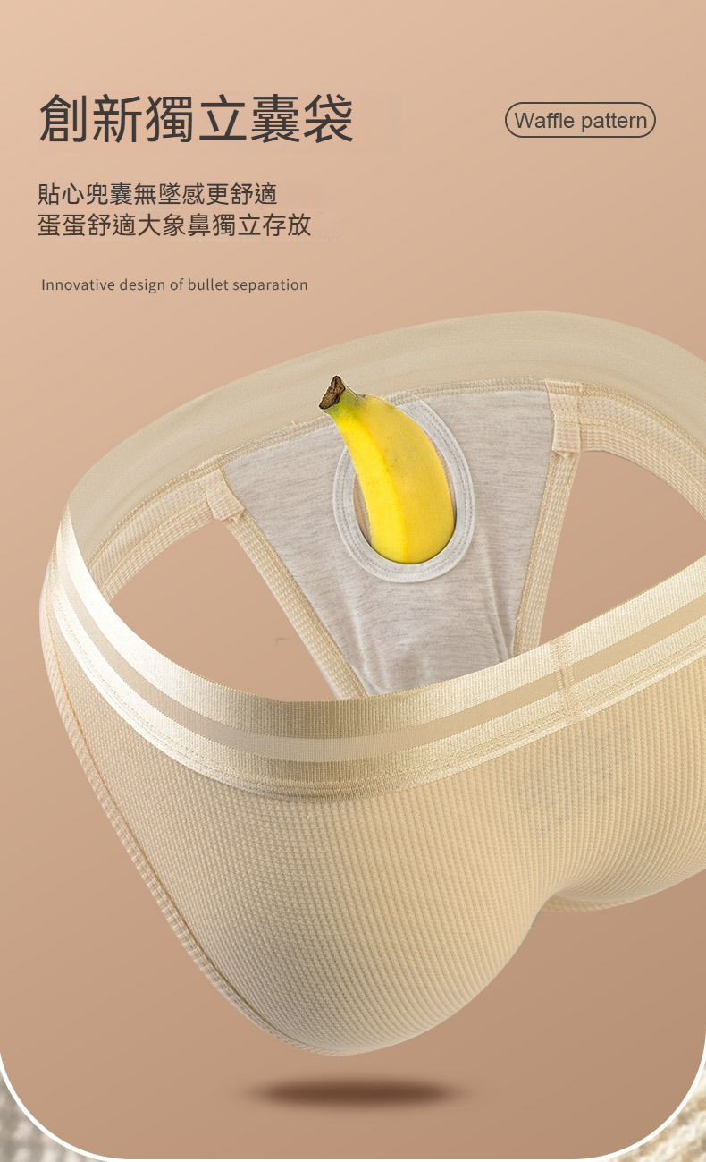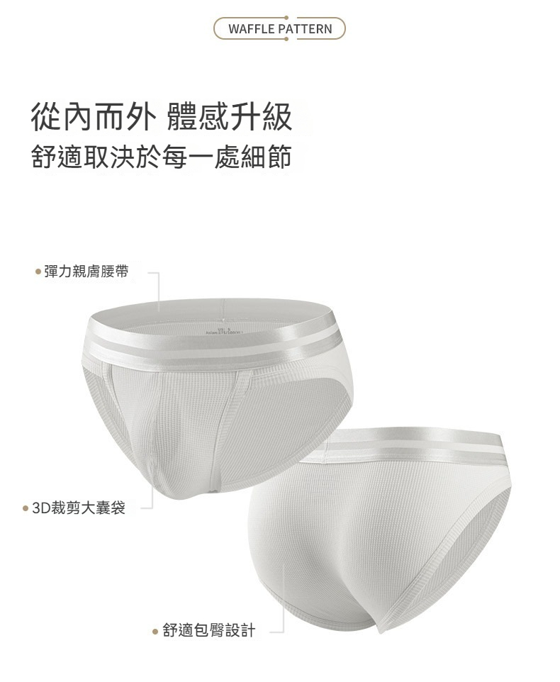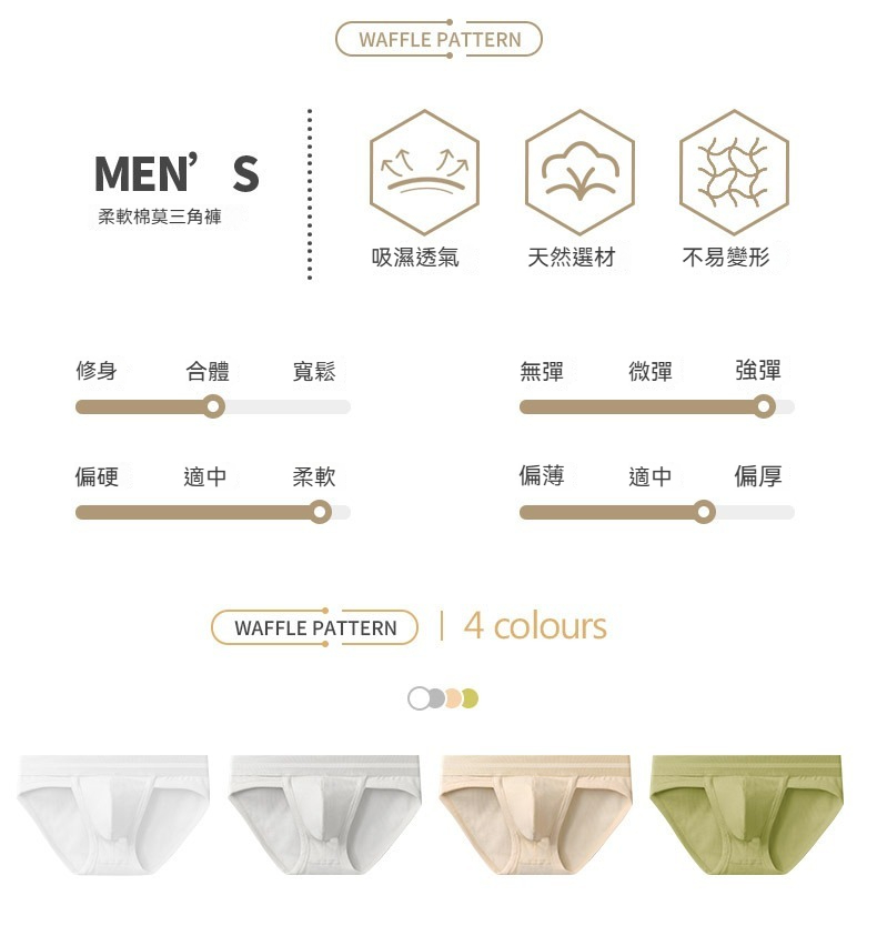 【親膚莫代爾】新款華夫格棉莫代爾槍彈分離三角男士內褲