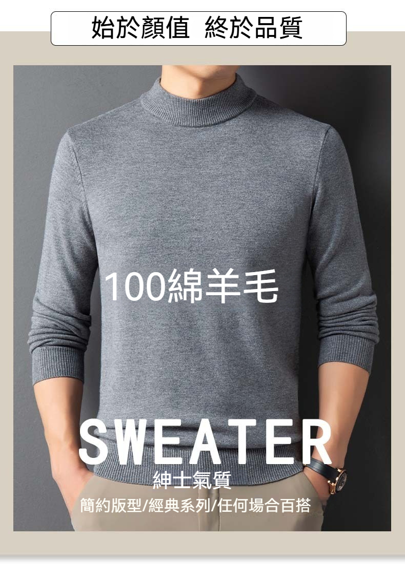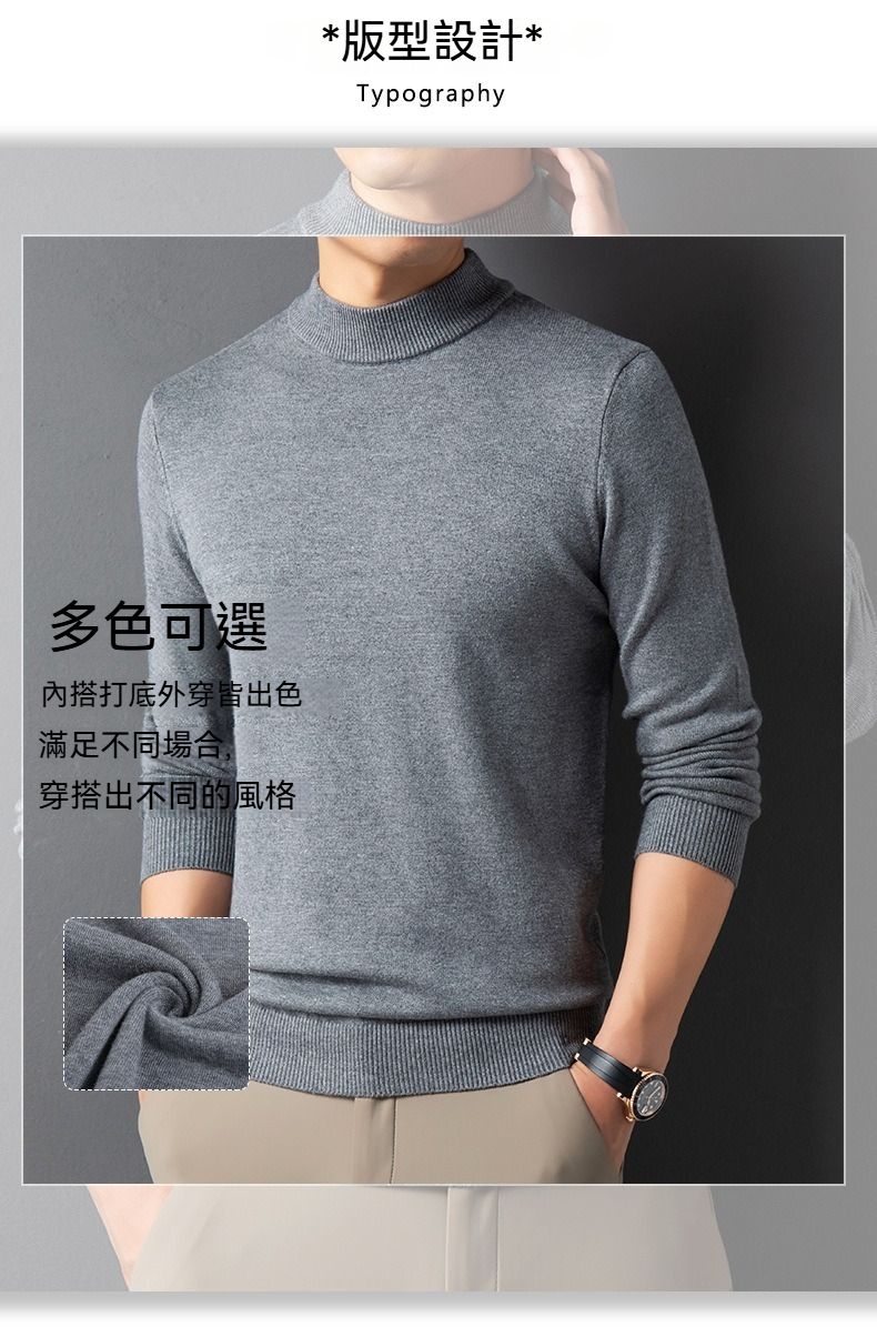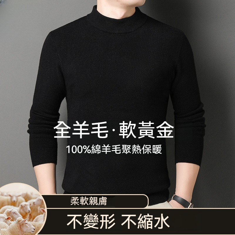 【超細超柔的美麗諾羊毛】精紡高品質澳洲羊毛半高領保暖内搭男士純色百搭長袖針織衫