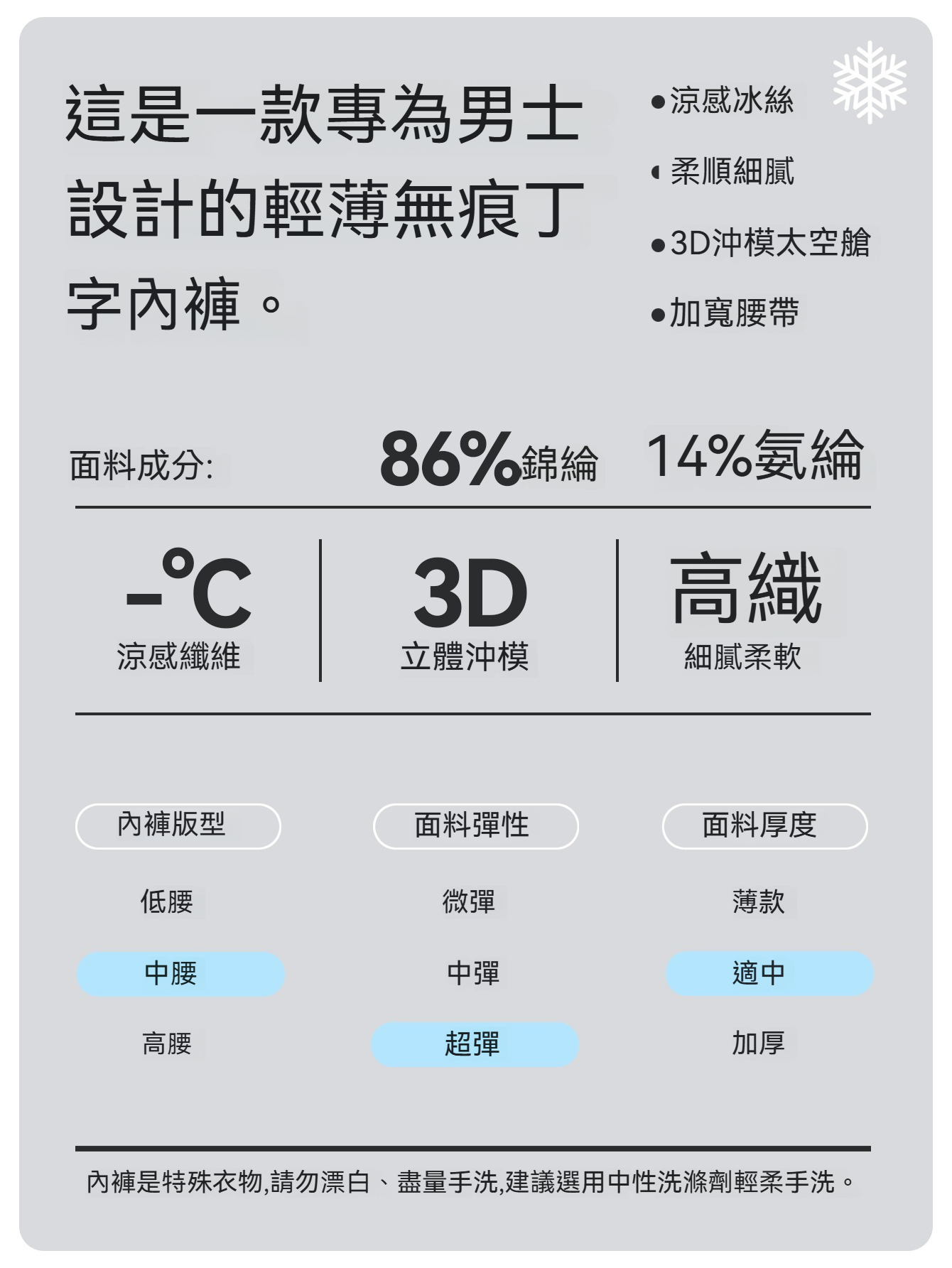 【輕奢撞色系列】全台爆賣!夏季3D衝模性感低腰冰絲男士T褲