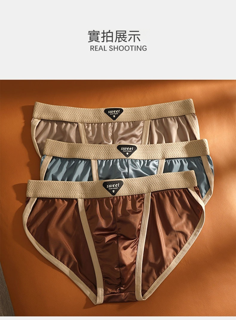 【輕奢緞面】高叉低腰透氣吸汗U凸男士三角褲