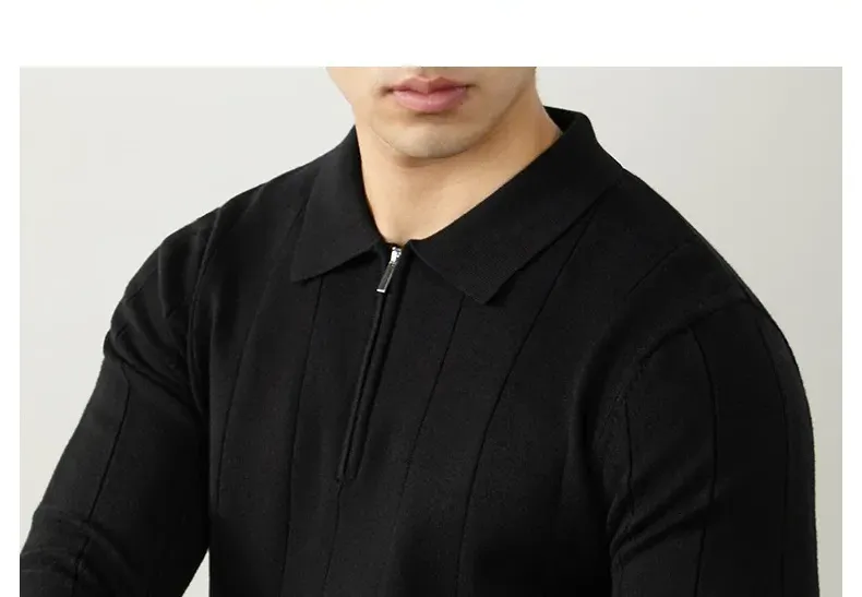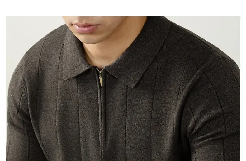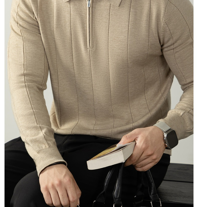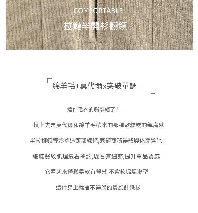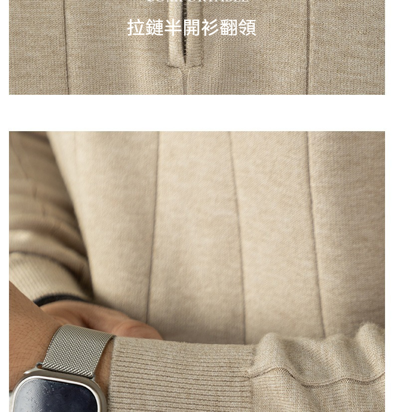 【輕奢老錢風】細膩柔軟綿羊毛莫代爾保暖半拉鏈立領純色商務翻領竪紋長袖毛衣