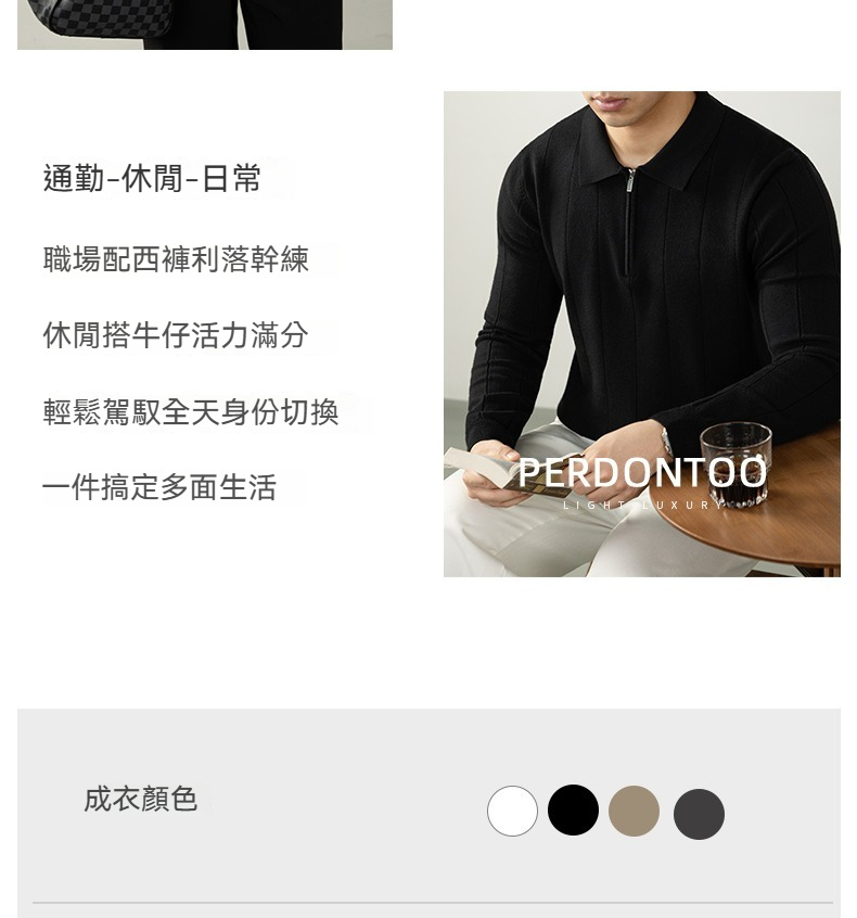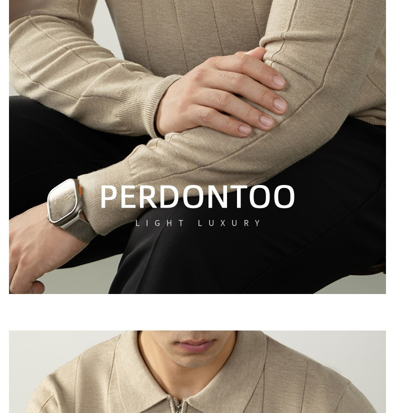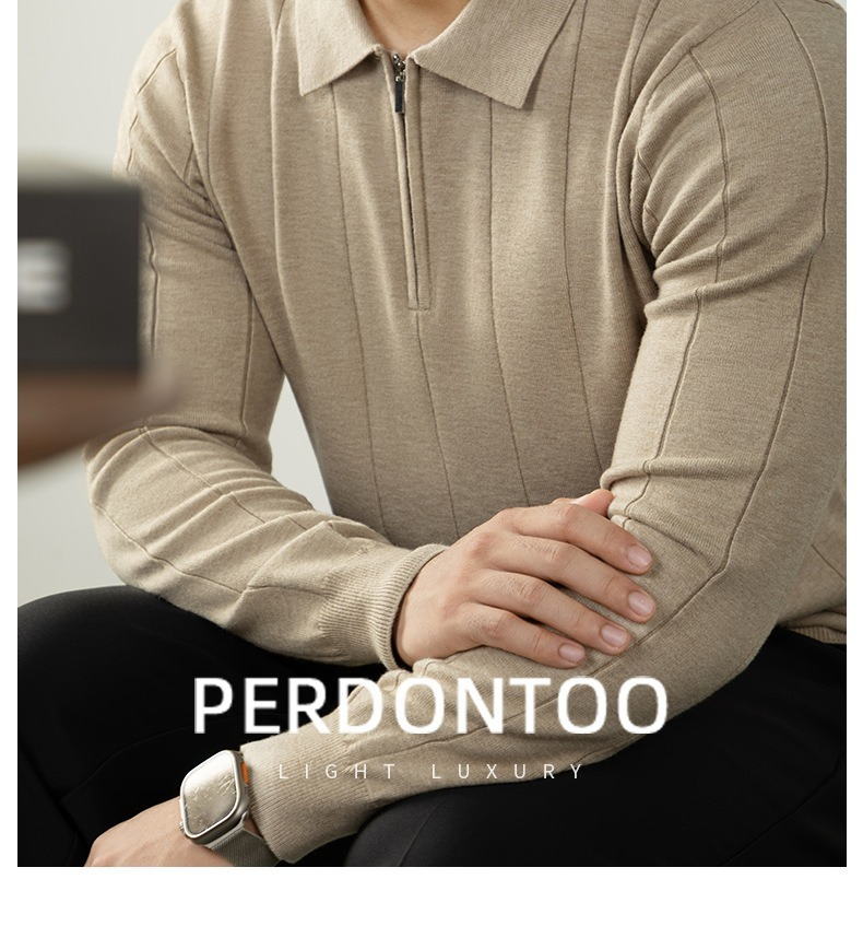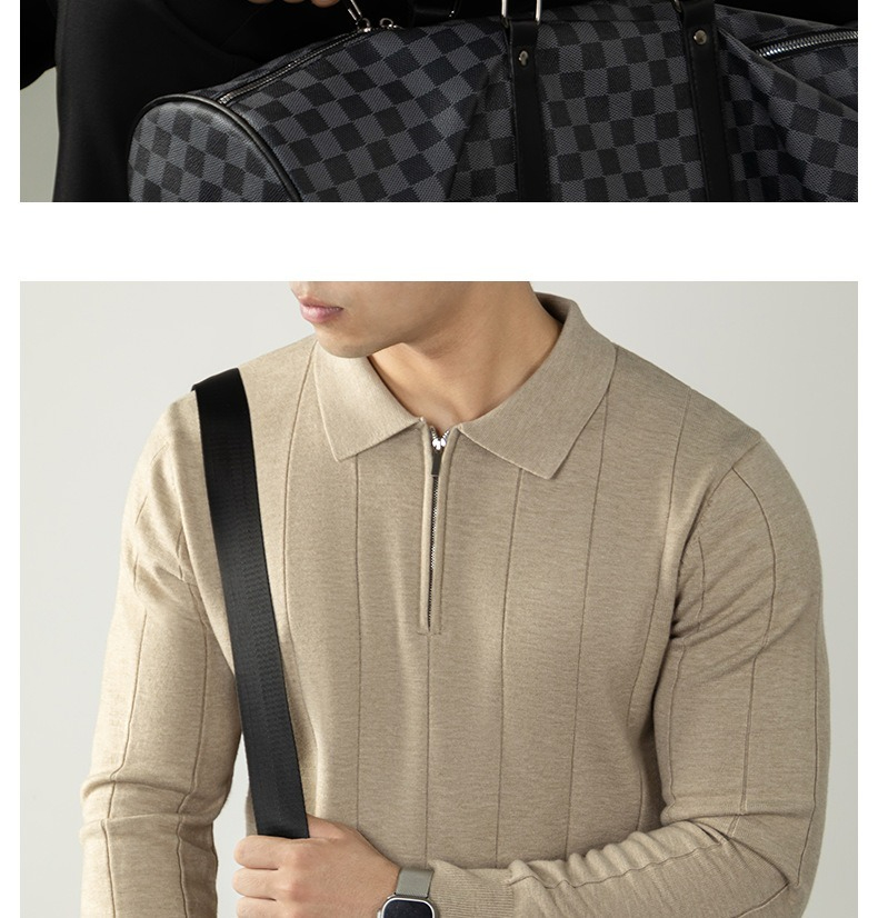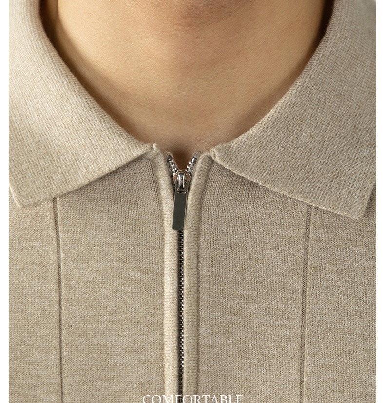 【輕奢老錢風】細膩柔軟綿羊毛莫代爾保暖半拉鏈立領純色商務翻領竪紋長袖毛衣