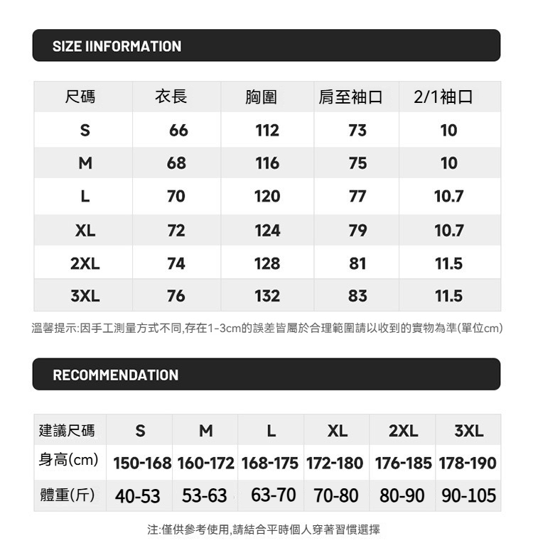 尺碼說明