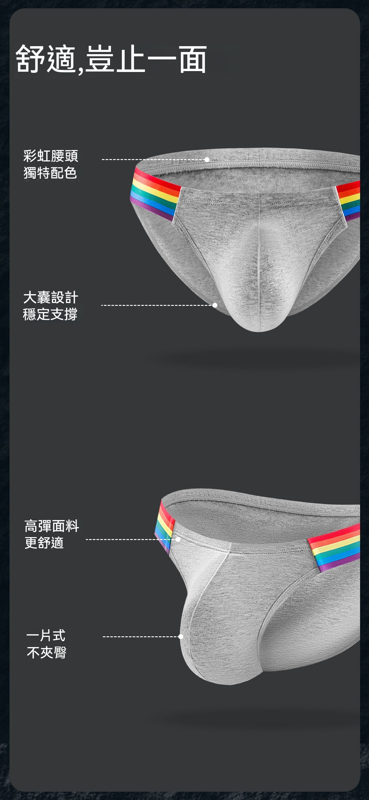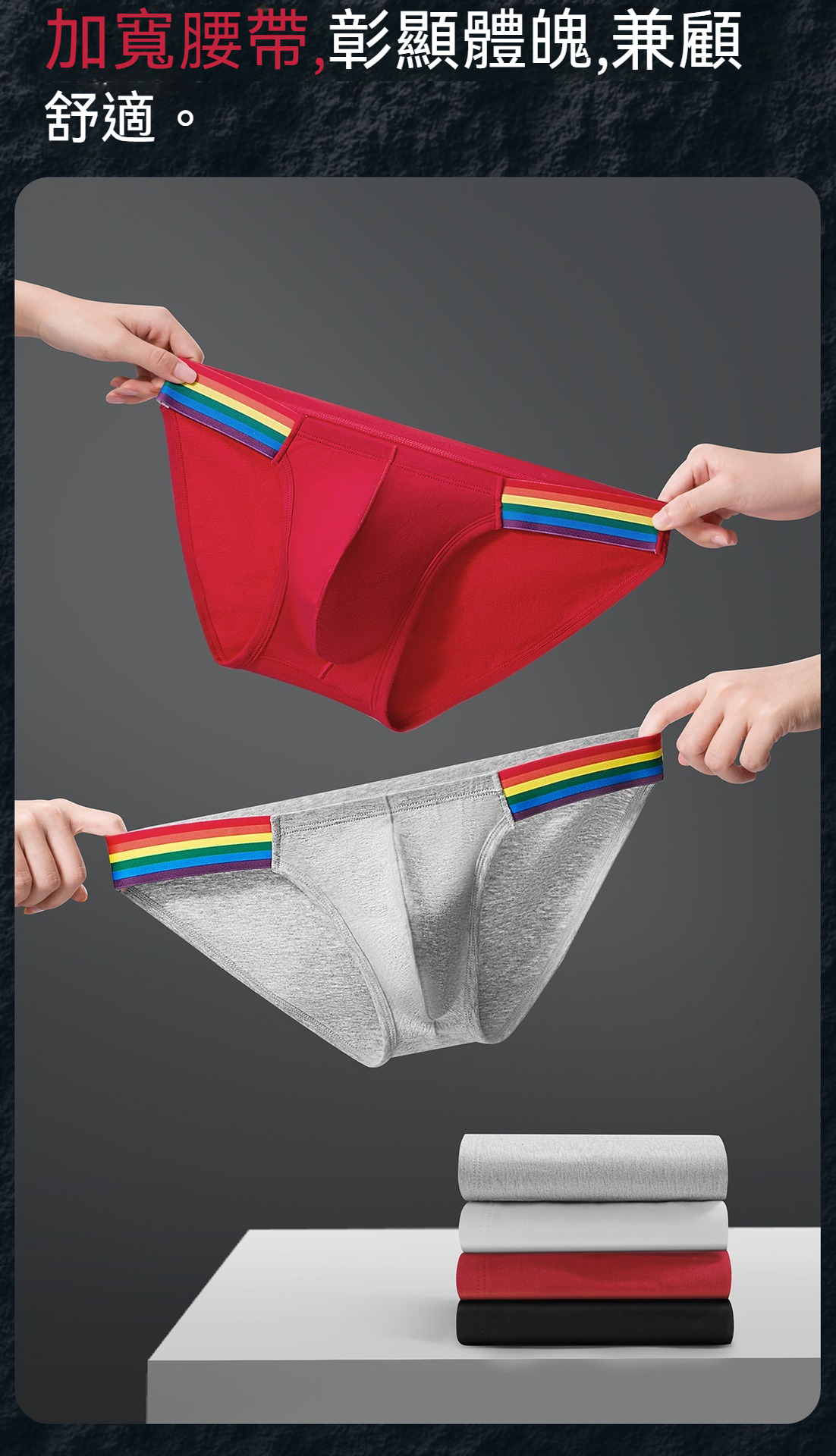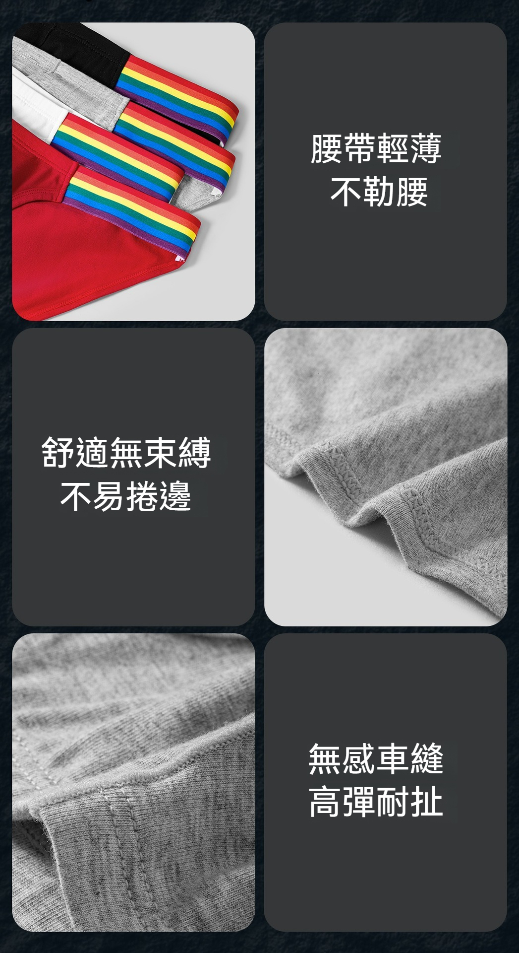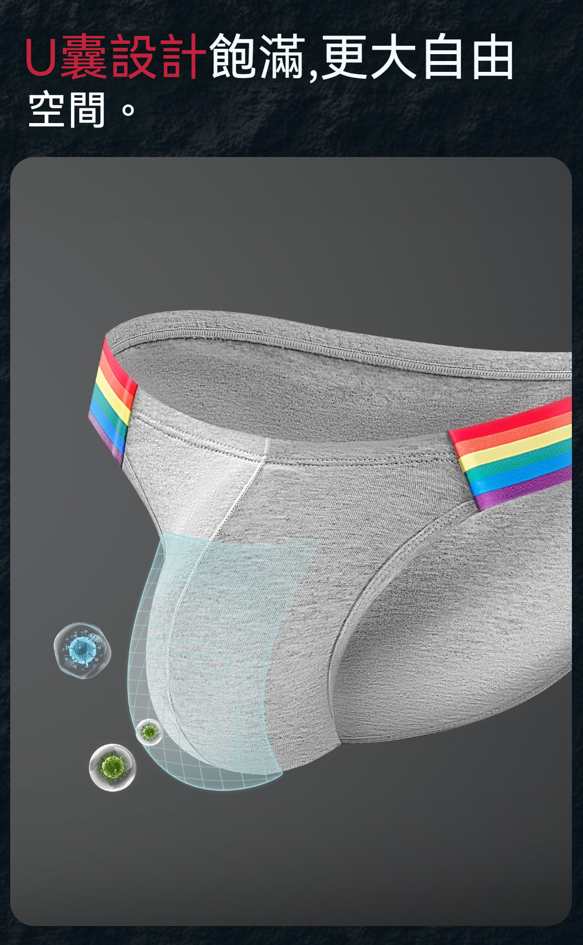 【透氣純棉系列】舒仕新款純棉彩虹性感高叉男士三角內褲