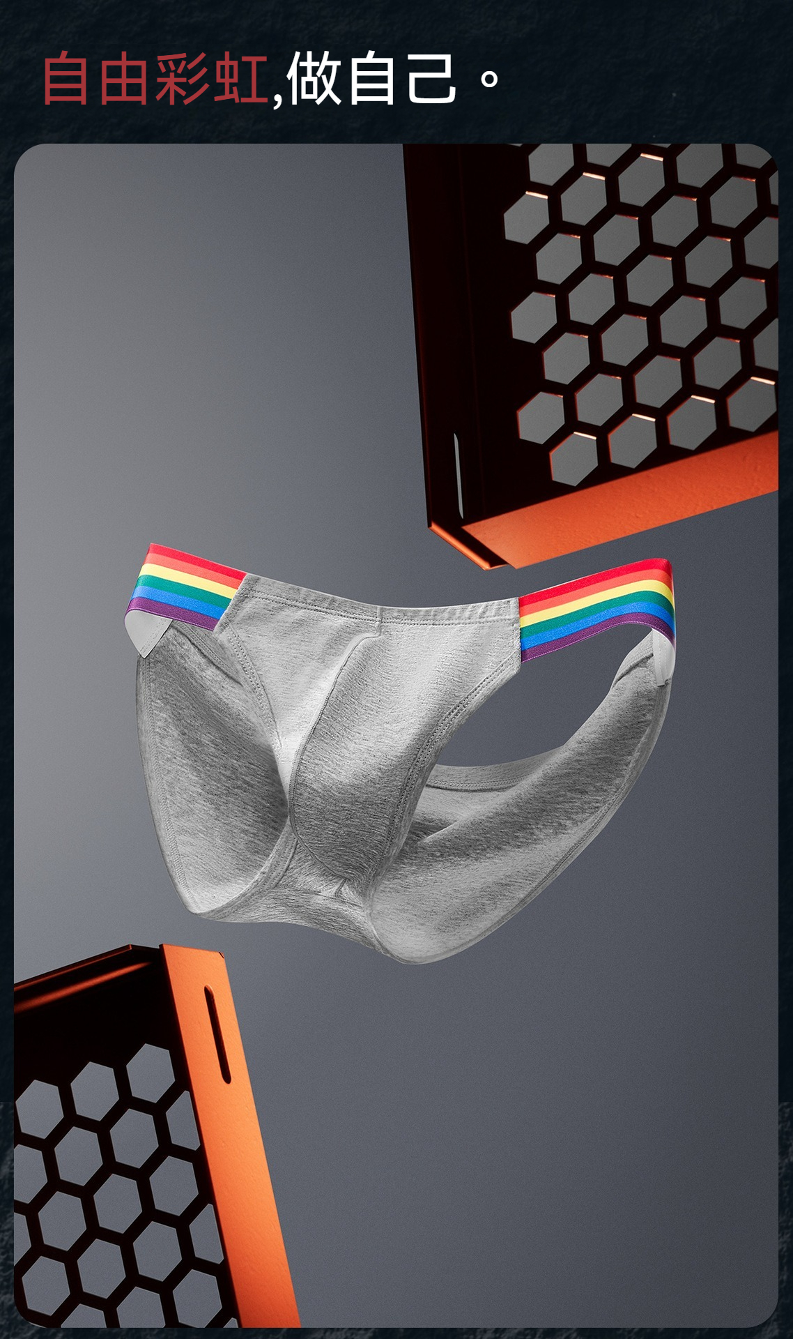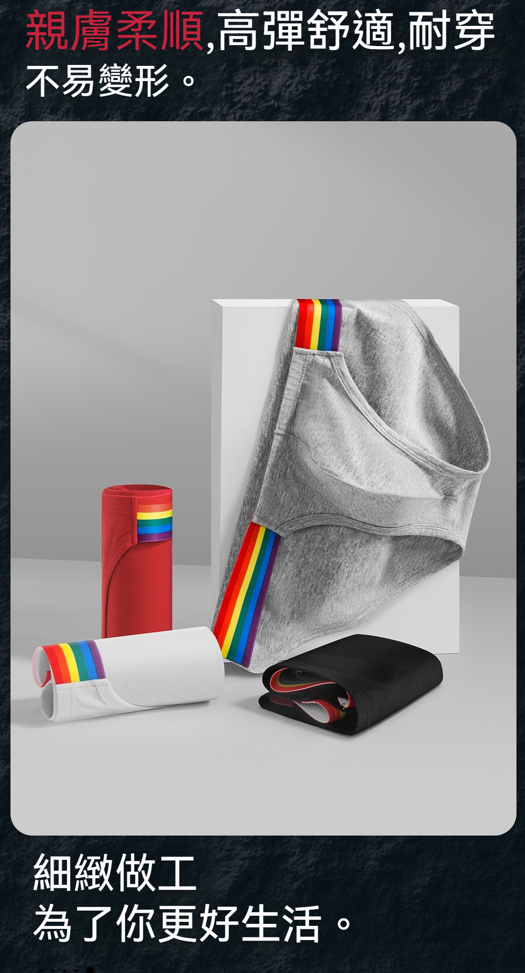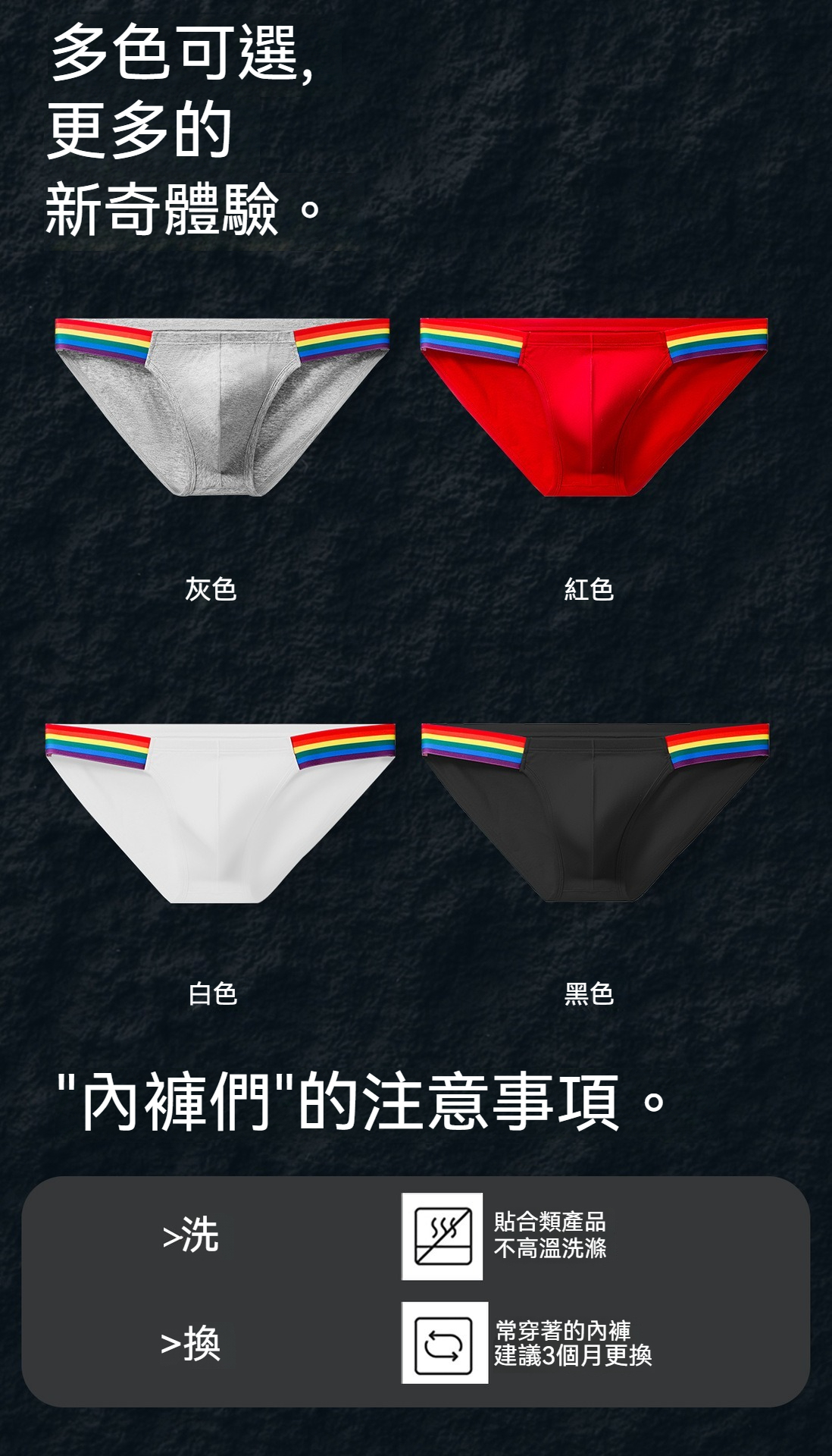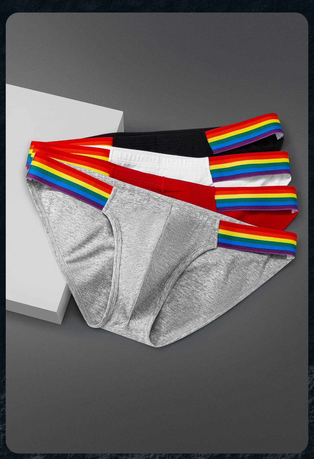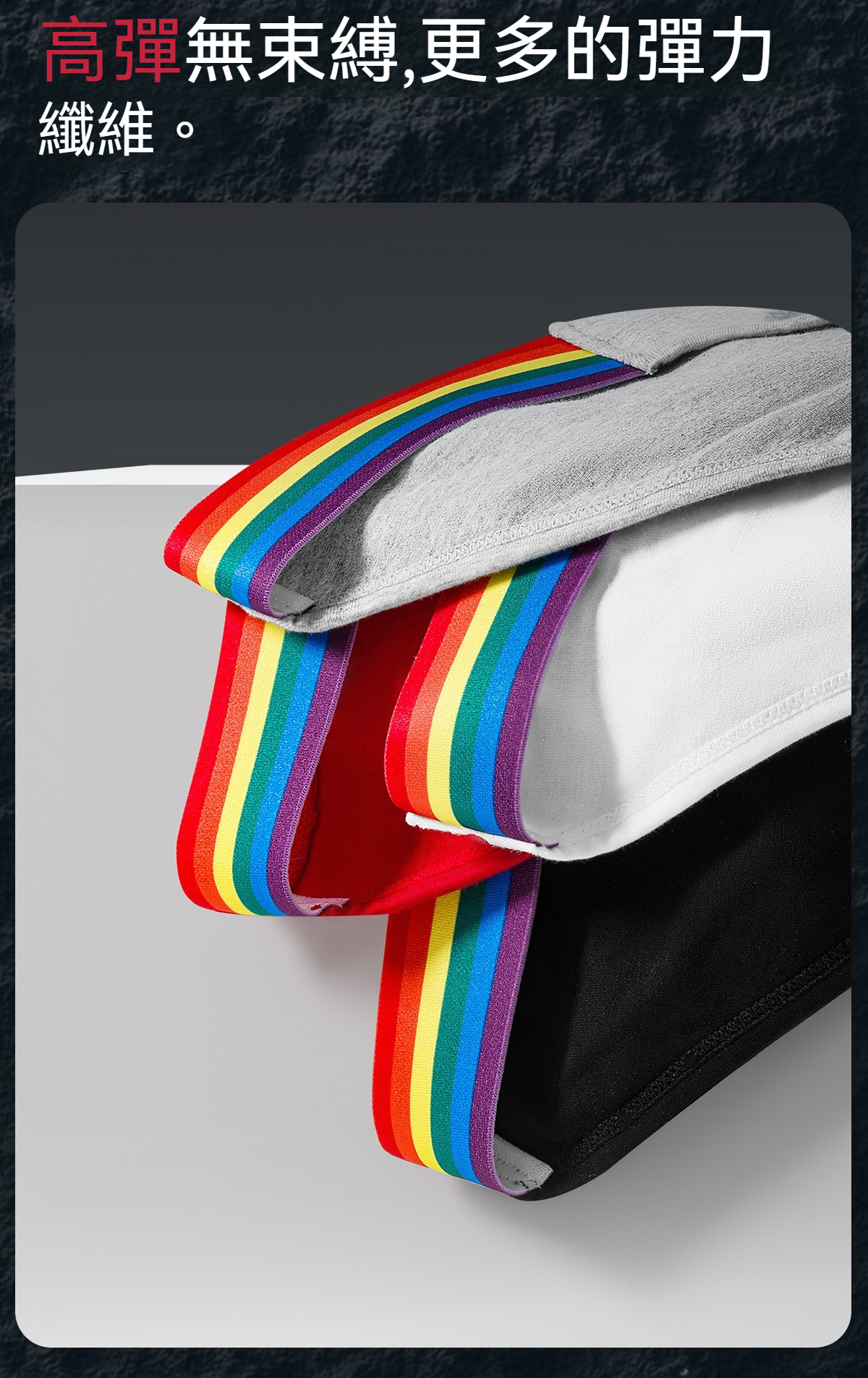 【透氣純棉系列】舒仕新款純棉彩虹性感高叉男士三角內褲