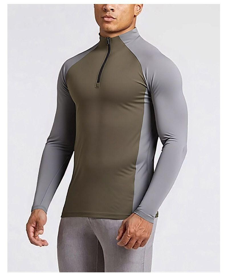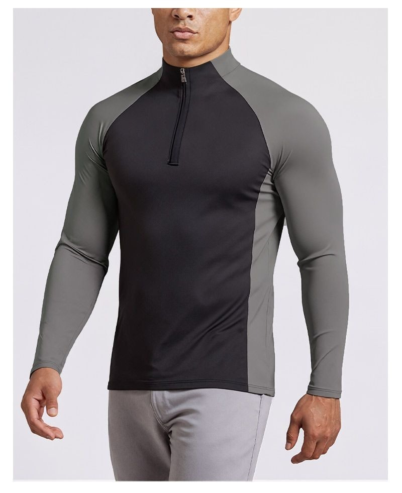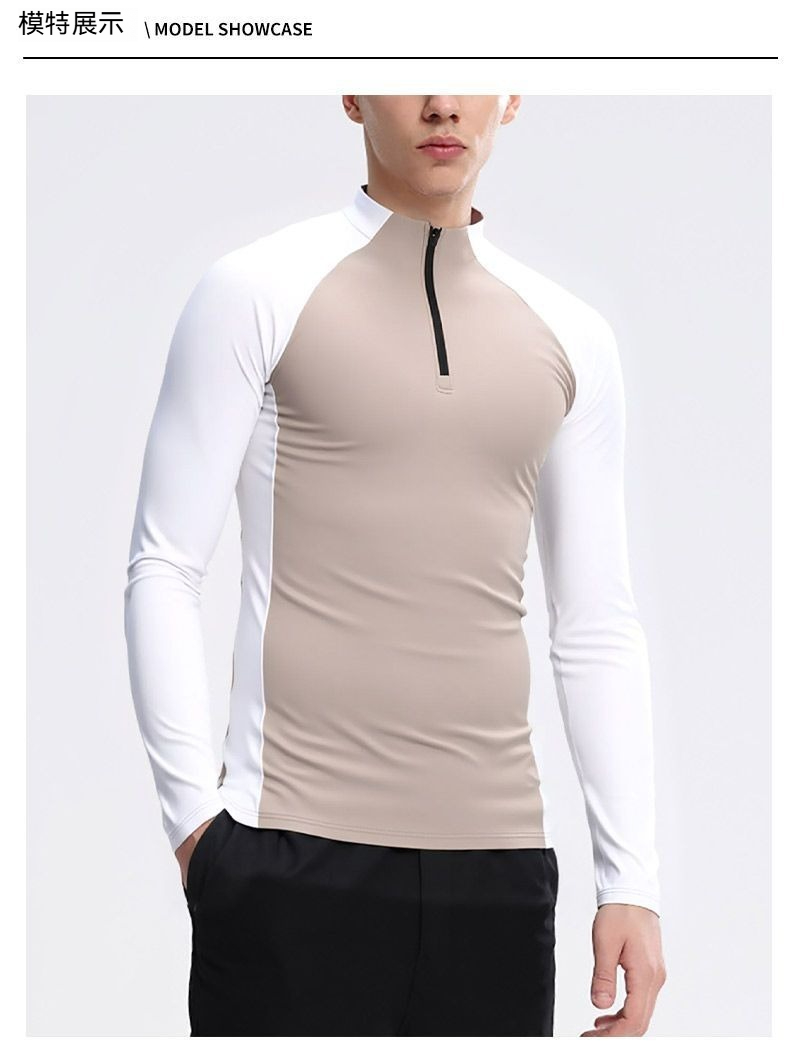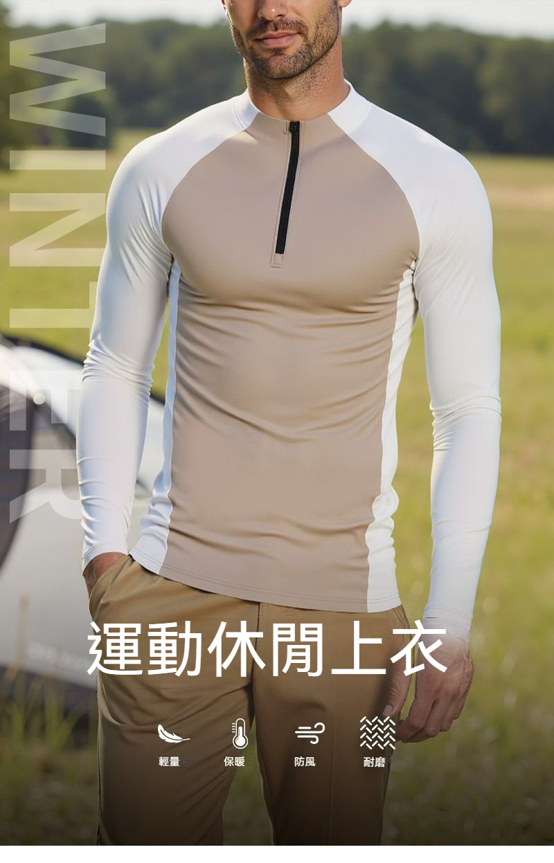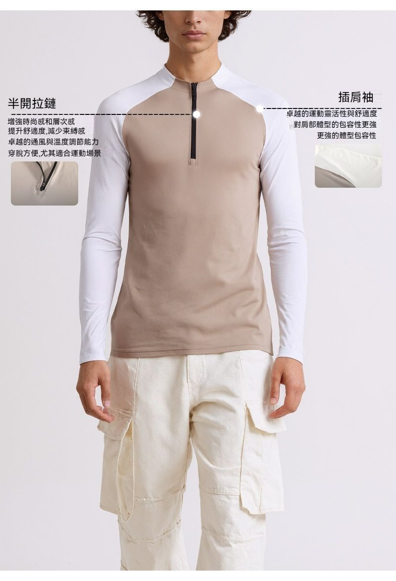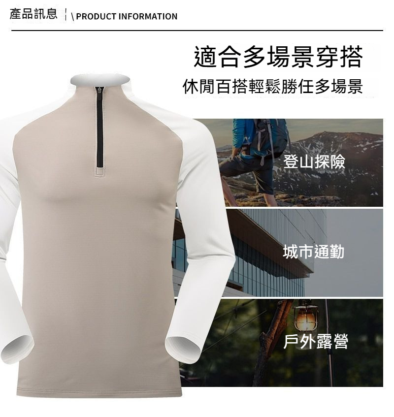 【速乾抓絨保暖】半拉鏈立領戶外運動騎行健身男士長袖速乾衣