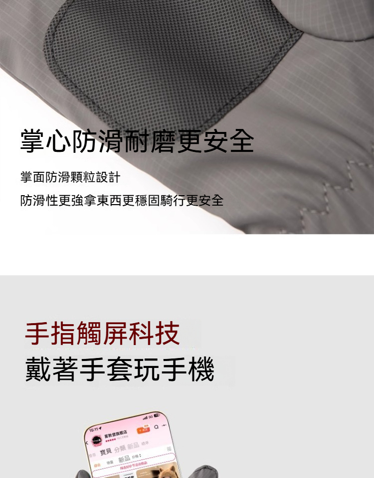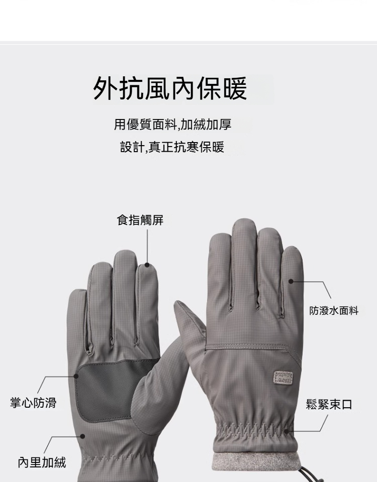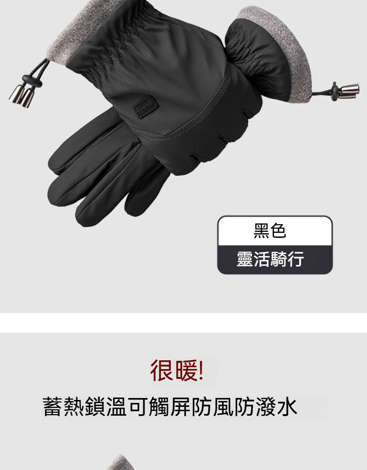 【防寒防風防水】可觸屏掌心防滑加絨保暖機車手套男士騎行戶外棉手套