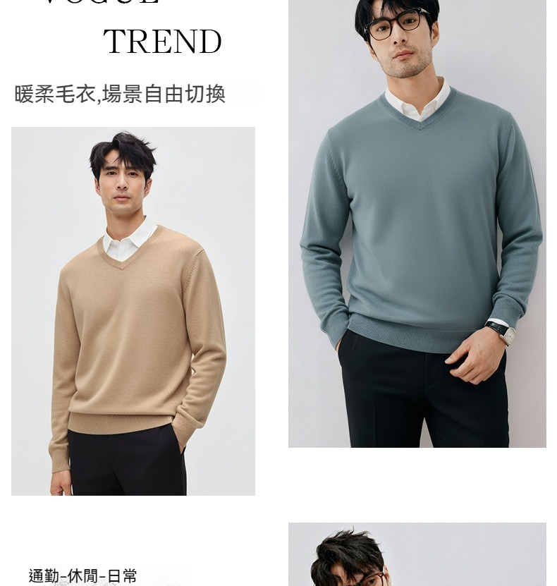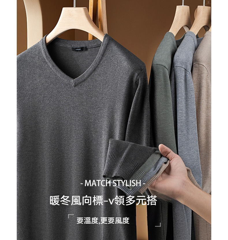 【雲感纖柔紗】暖冬親膚V領毛衣男士保暖通勤百搭曡穿純色針織衫