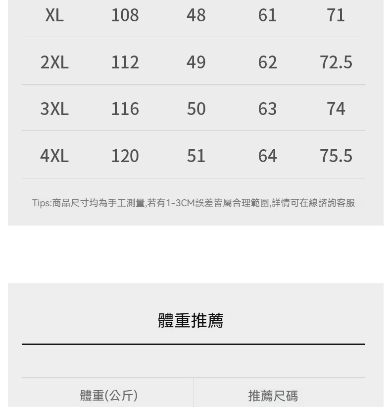 尺碼說明