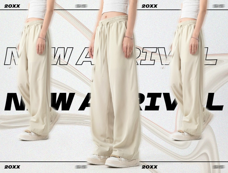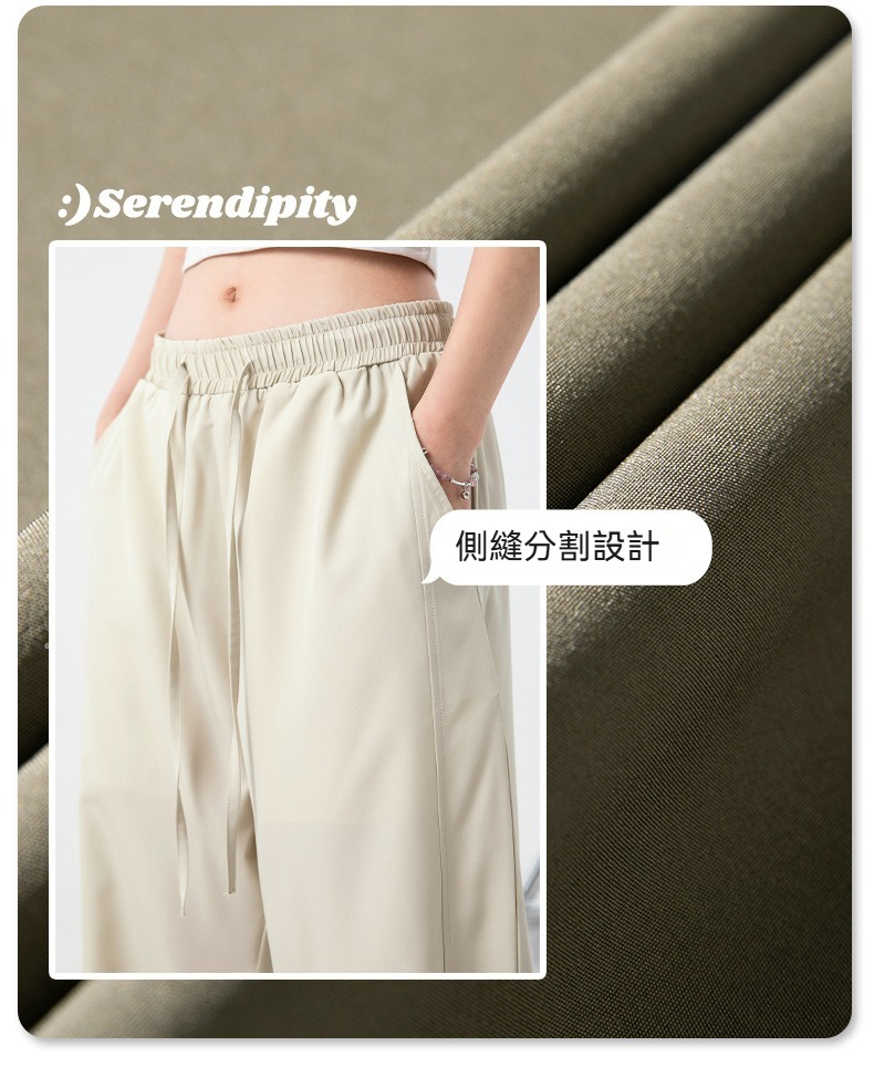 【空氣涼感】夏季輕薄冰絲寬鬆直筒純色百搭長褲