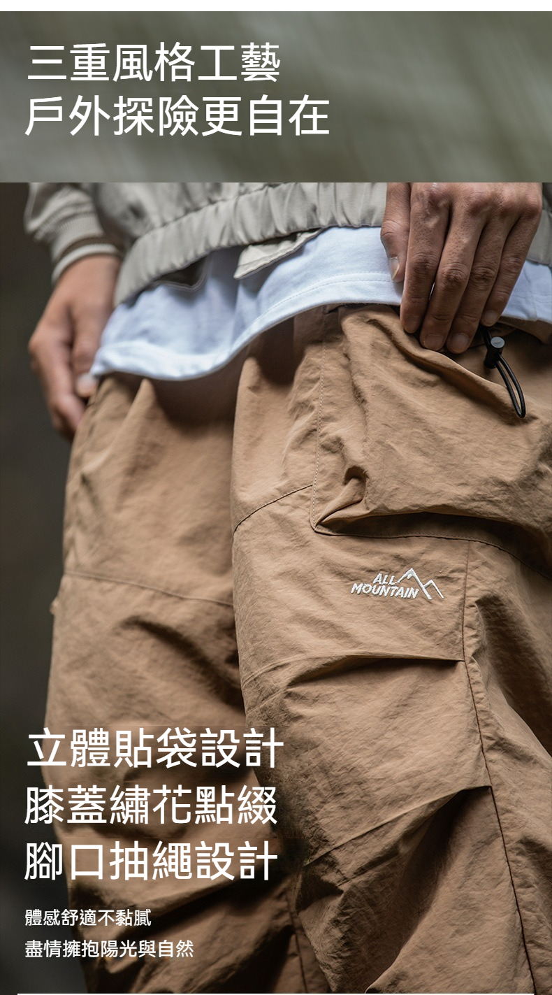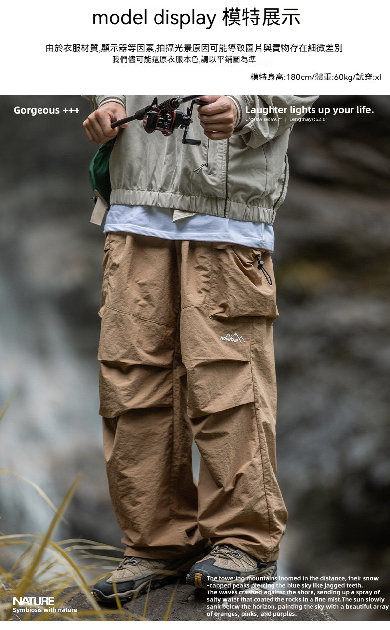 【雙褶大口袋】夏季新款日系寬鬆戶外機能防潑水工裝褲