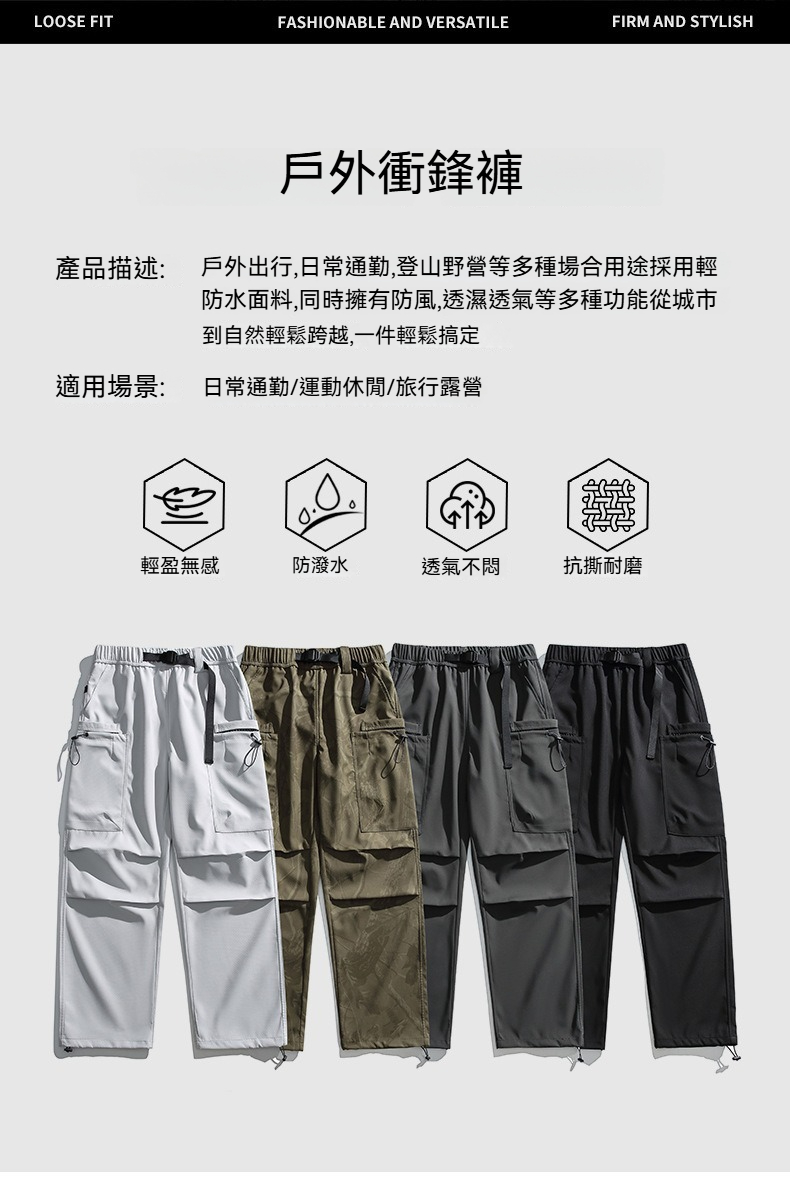 【冰絲防水】山系戶外冰絲防水衝鋒褲工裝褲
